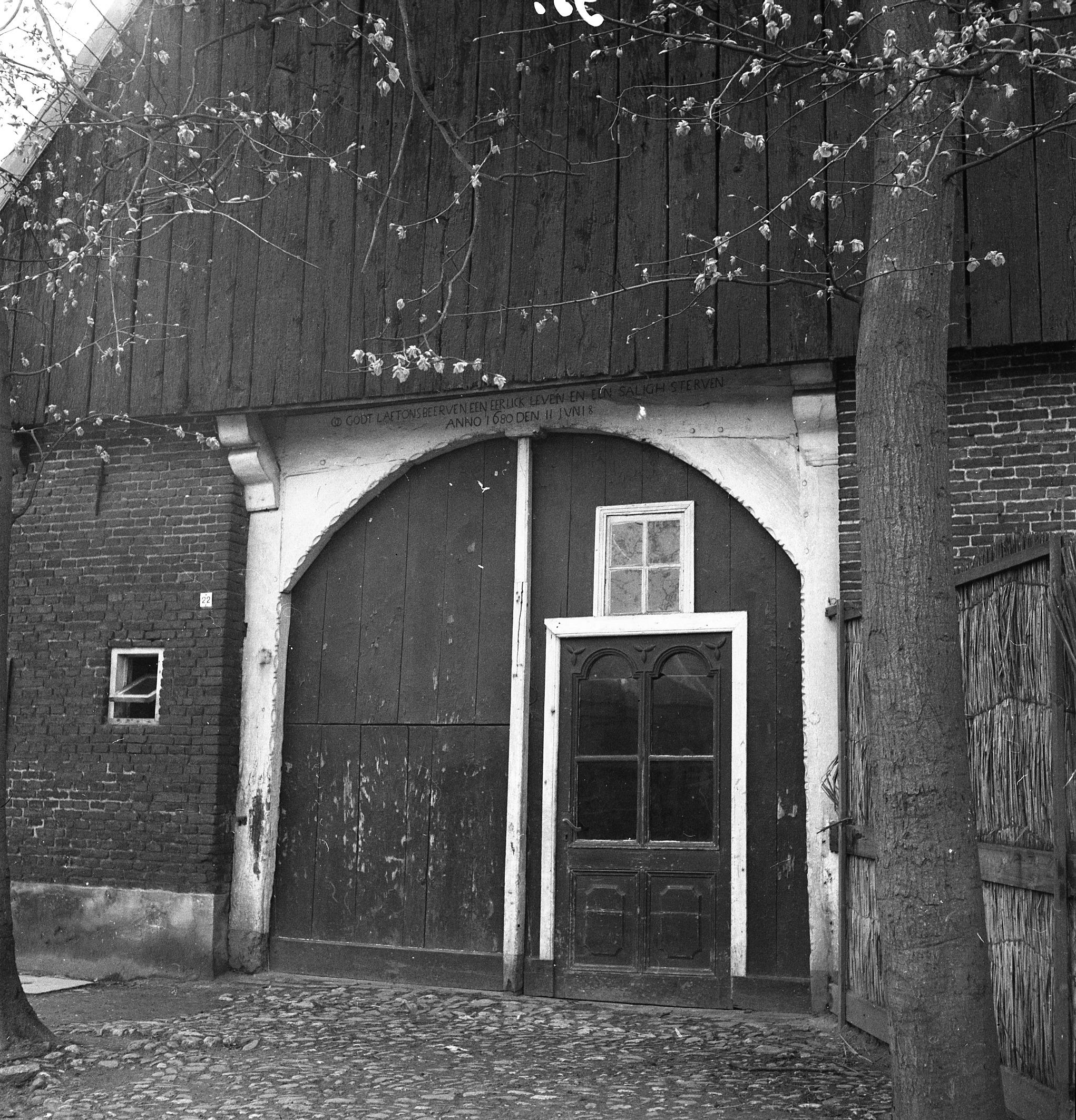 Deur van een boerderij, Panheel, 1943 (zwart-wit neg...