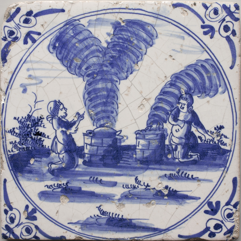 tegel van keramiek met tinglazuur, voorstellende: He...