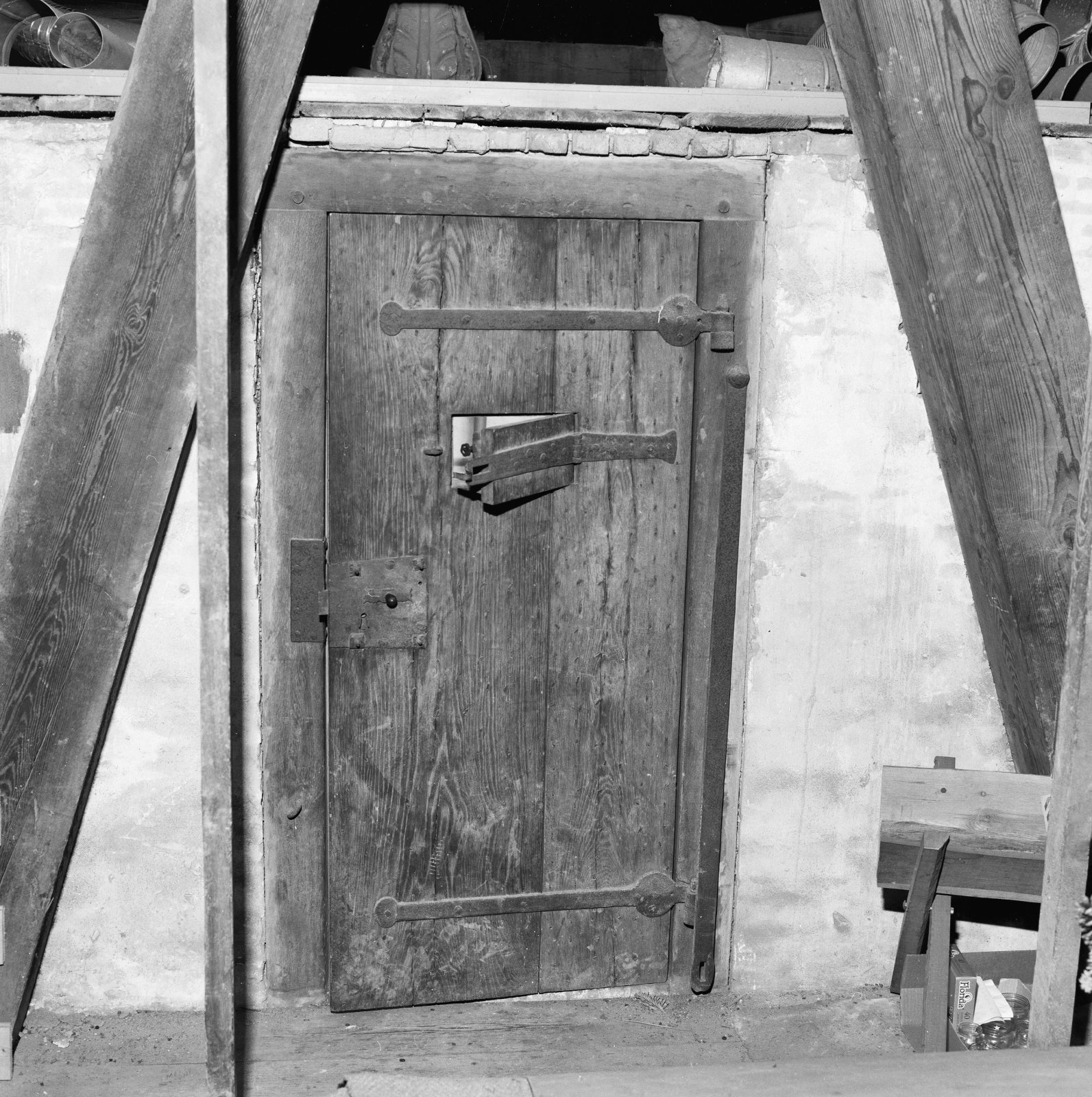 Interieur, gevangenenhok met deur op verdieping