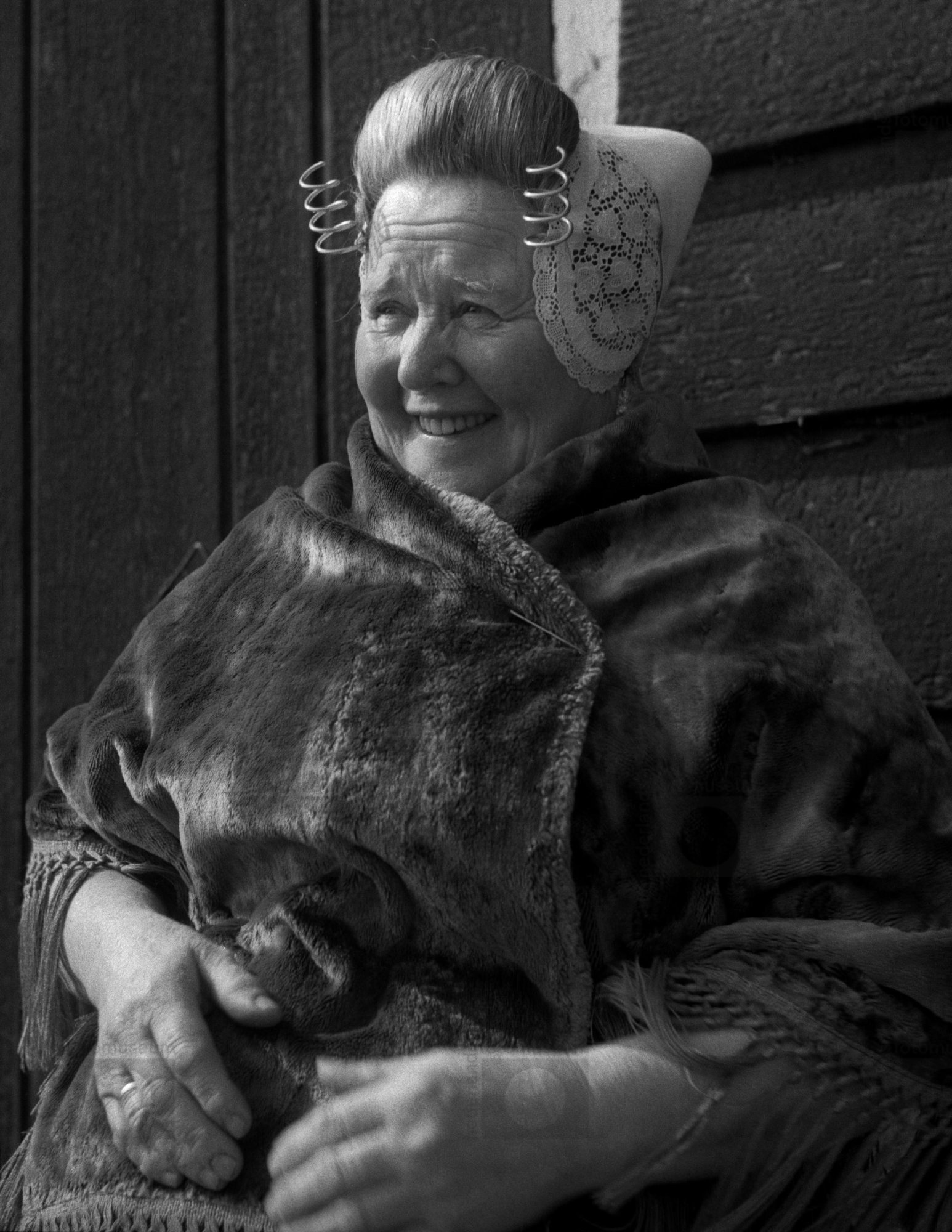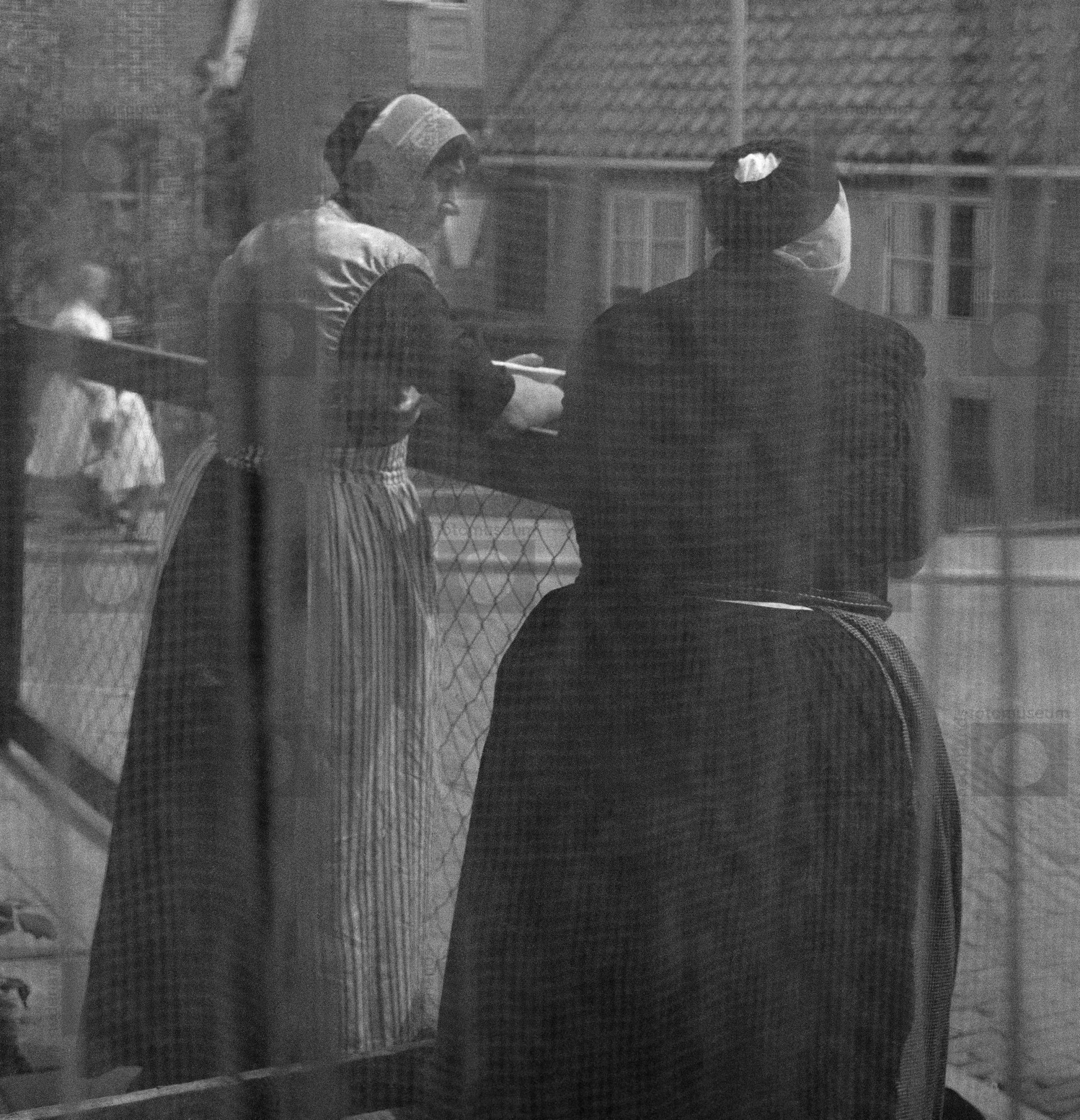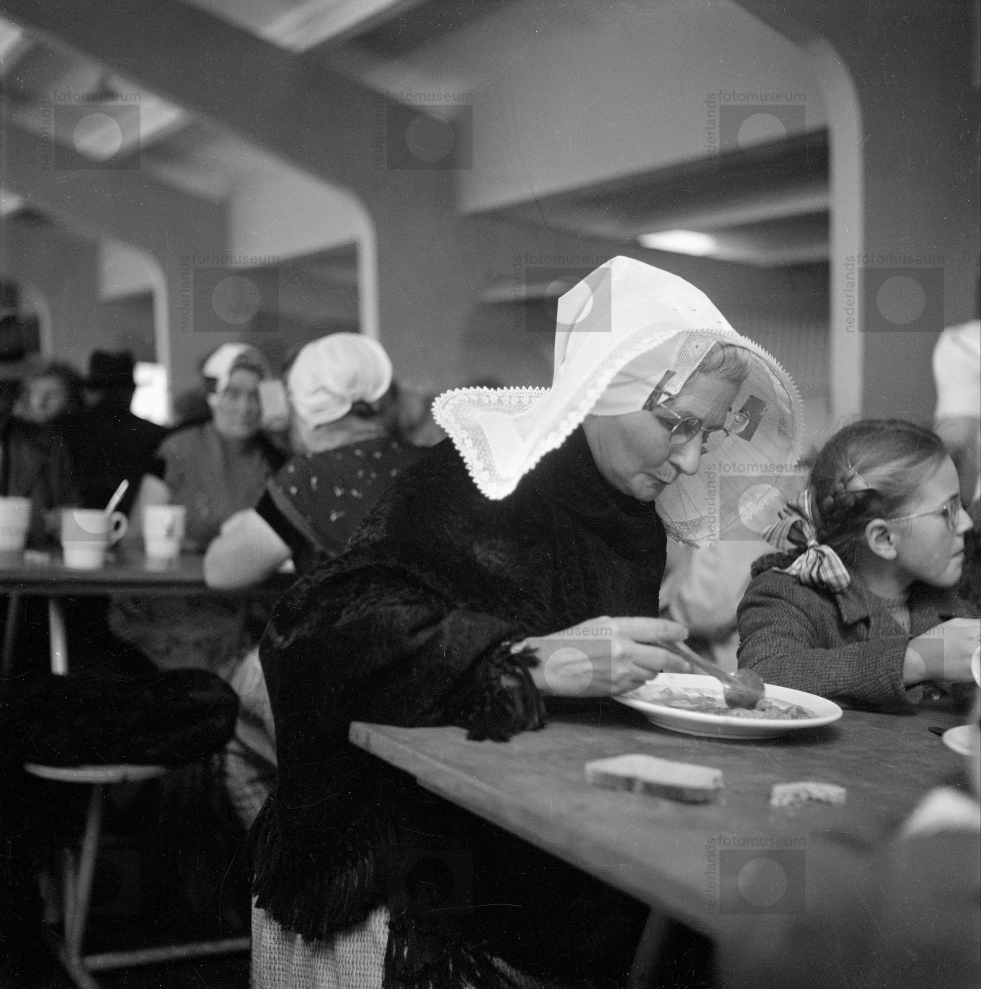 Vrouw in rouwdracht met isabé-muts, Huizen (1950-1959)