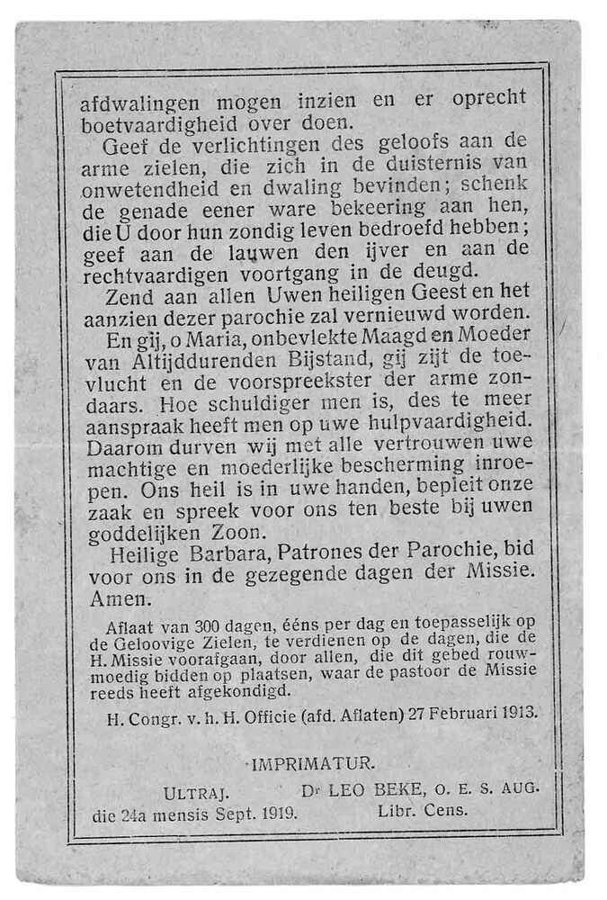 gedachtenisprent geassocieerd met Groote Missie, par...