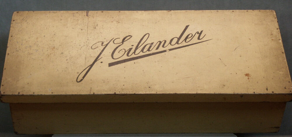 Gebaksdoos van hout met opschrift J. Eilander, Culem...