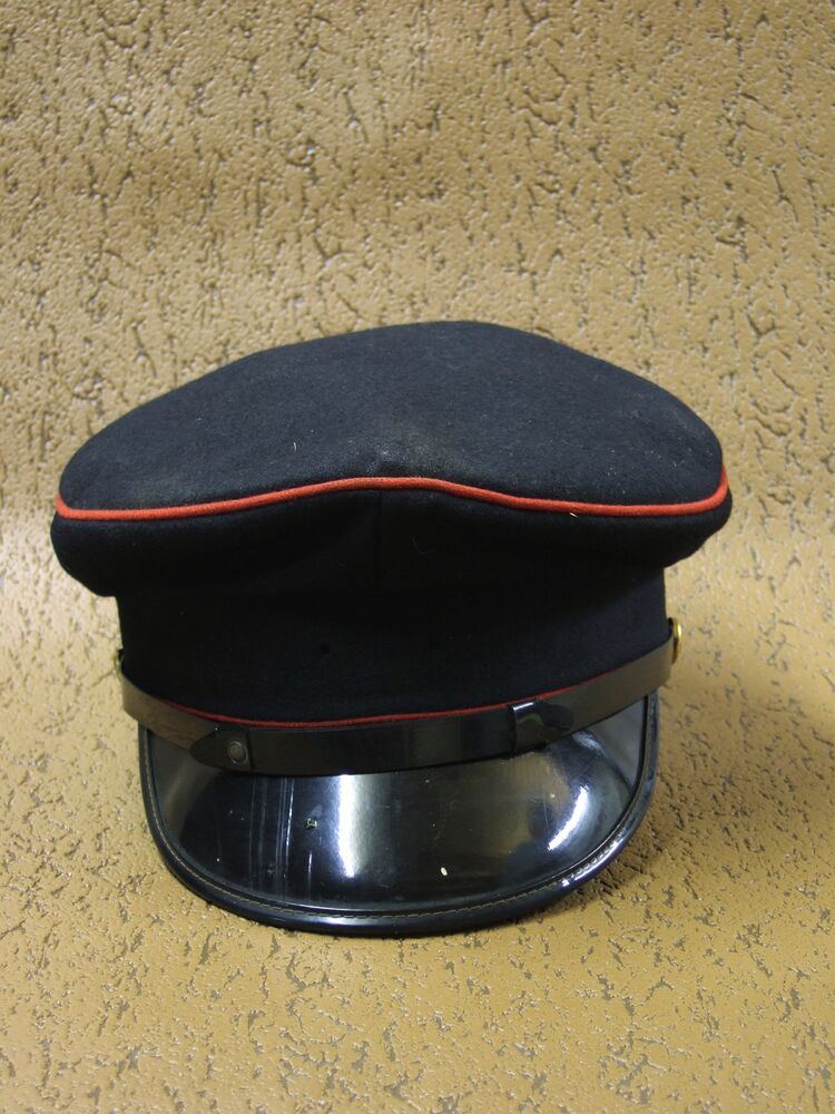 Uniformpet van donkerblauwe wol en rode bies en 2 ko...