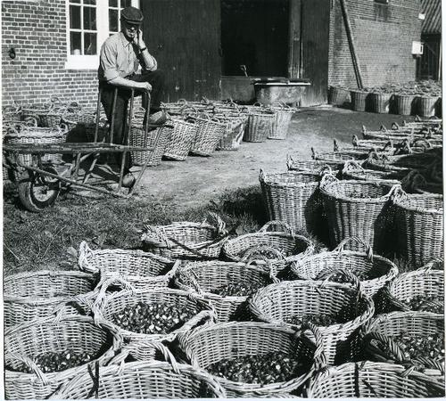 Foto in zwart-wit van rieten manden met gerooide nar...