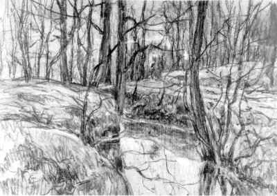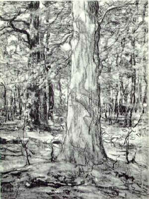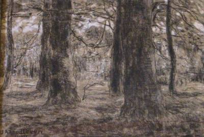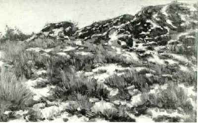 Dennenbosrand, dennenbomen met hoogopsprietend bruin...