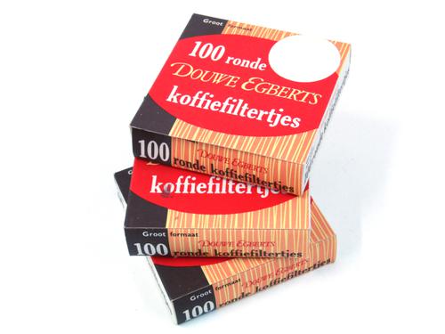 5 doosjes met 100 ronde Douwe Egberts koffiefiltertjes.