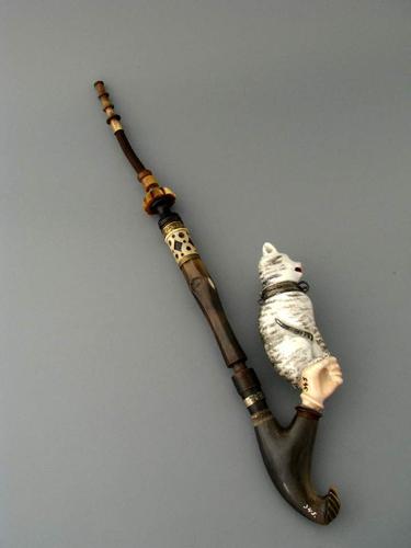 Porseleinen pijp in de vorm van een op een hand zitt...