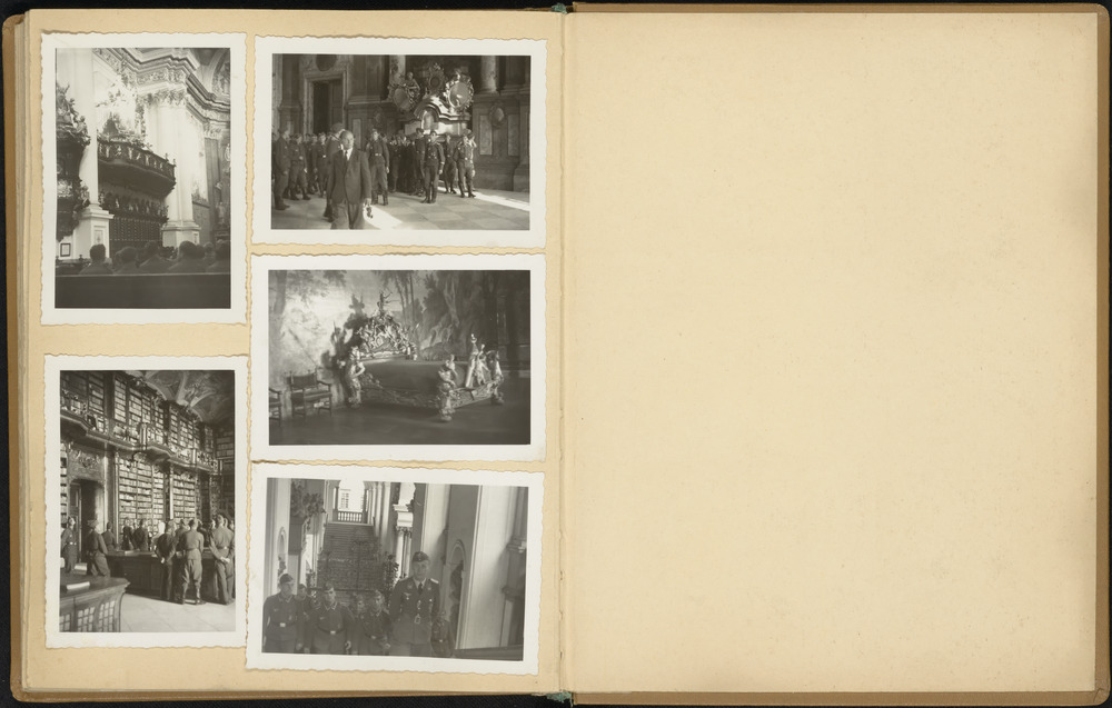 Duitse militairen in een kerk, een kasteel en een bi...