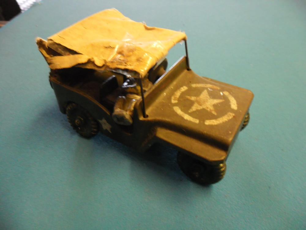 Speelgoedauto, jeep, staal, met mannetje