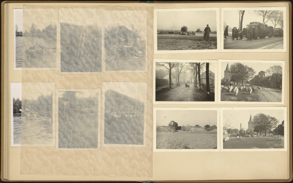 Zes foto's: zoeklicht opstelling, militairen onderwe...