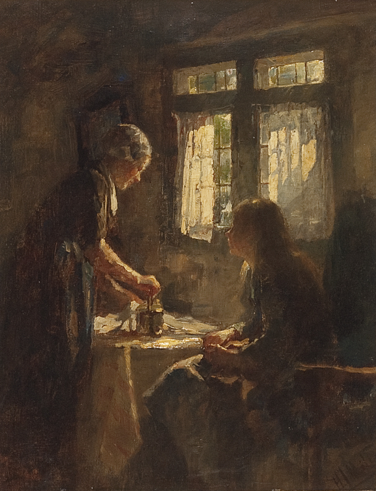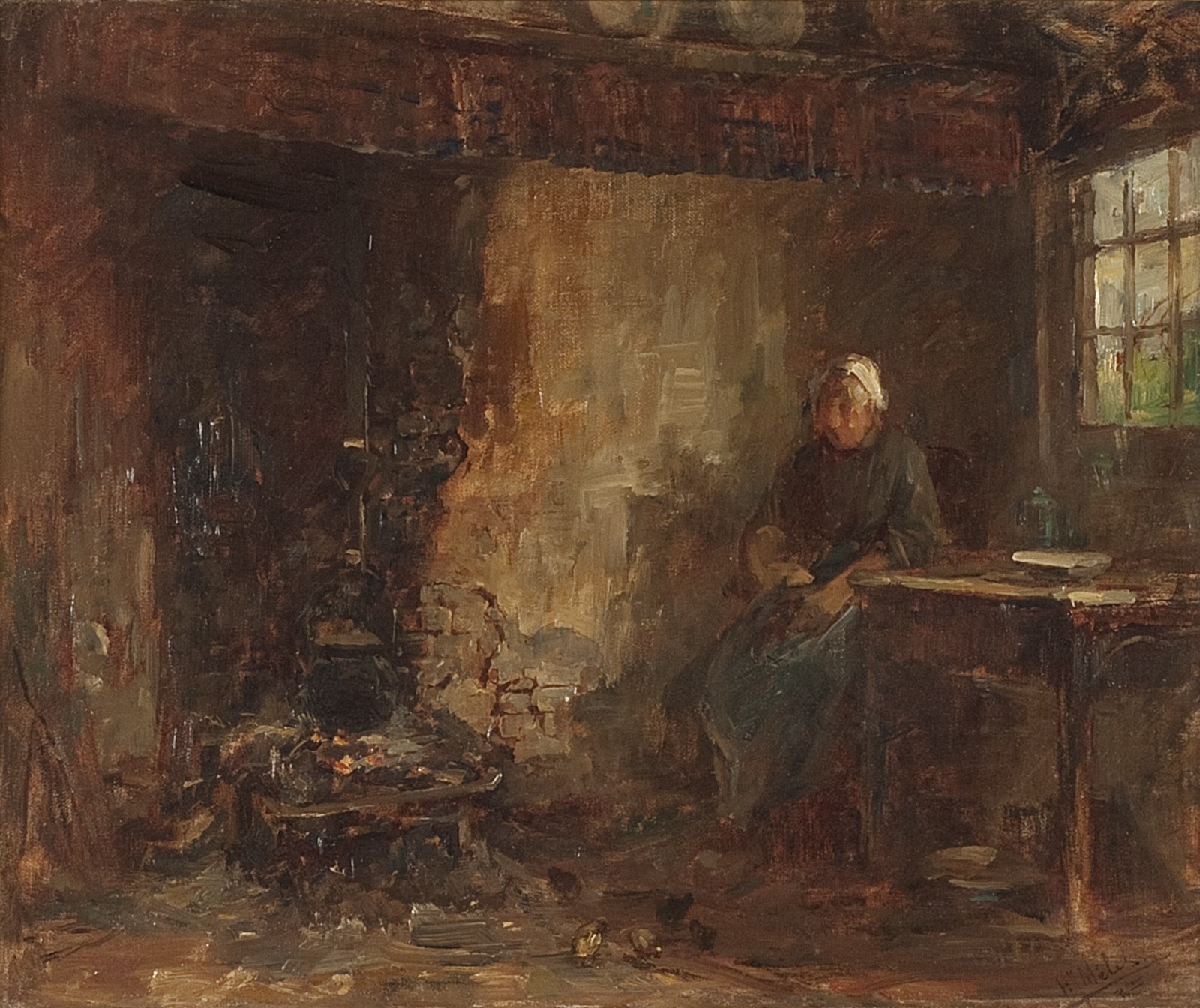 Interieur met boerenvrouw