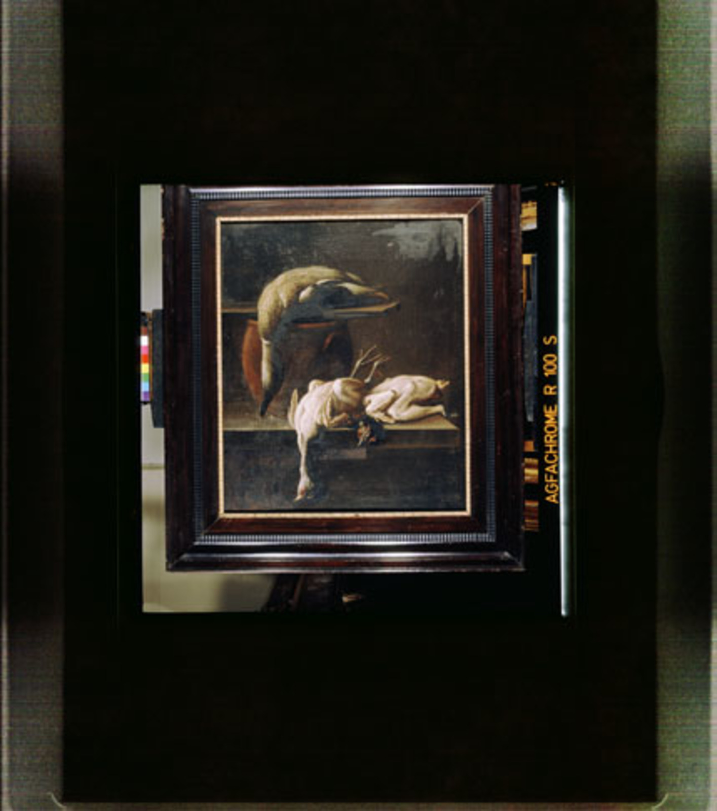 Stilleven met dode eend en geplukte kippen