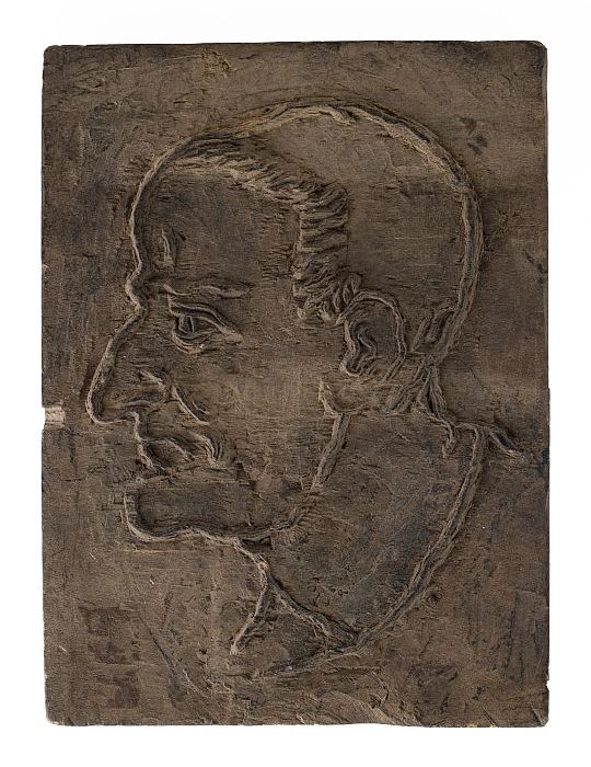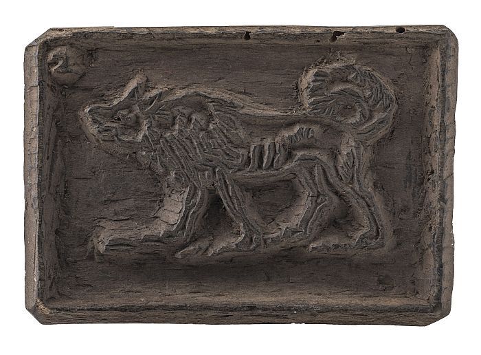 Houten cliché met de afbeelding van een liggende leeuw