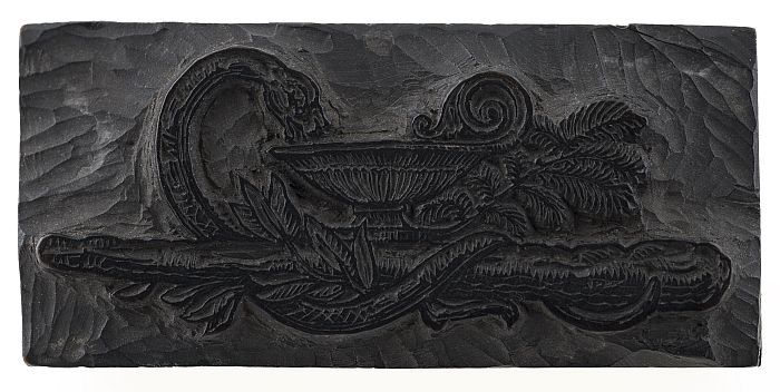 Houten cliché voor een afbeelding van een cartouche