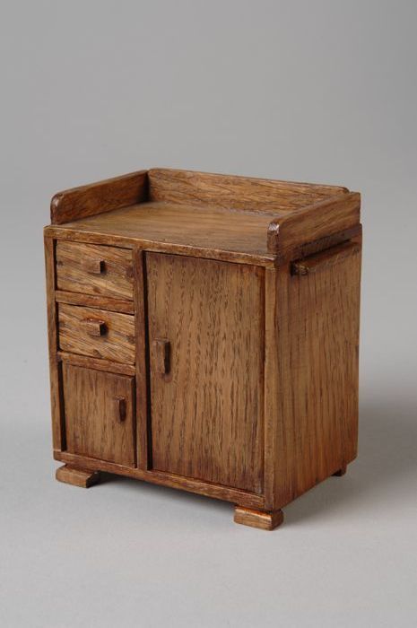 Eikenhouten miniatuur commode voor babykamer poppenh...