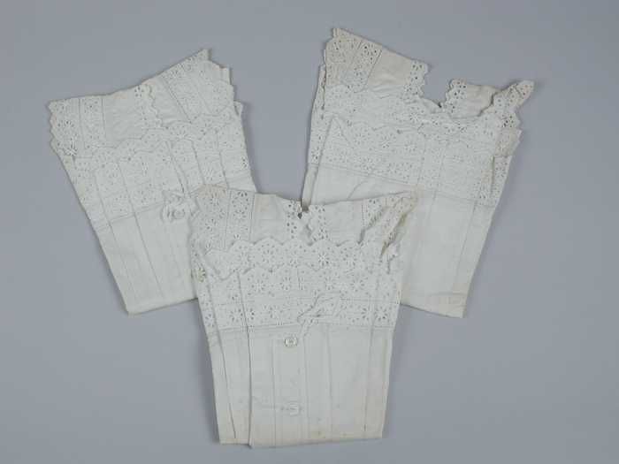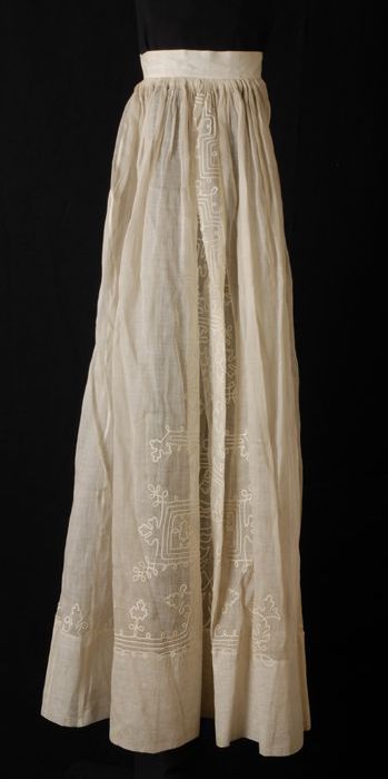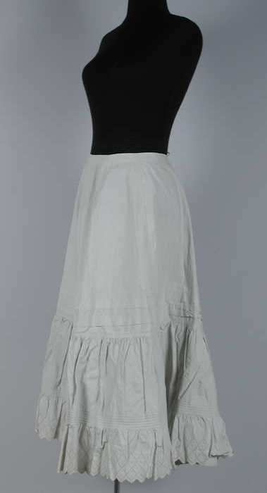 Lange wijde onderrok van wit katoen, halverwege een ...