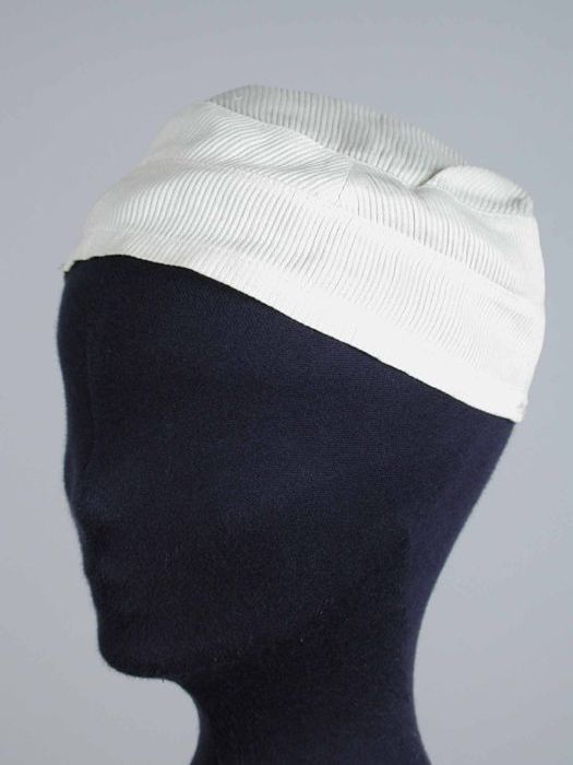 Platte ronde slaapmuts of ondermuts van wit piqué ka...