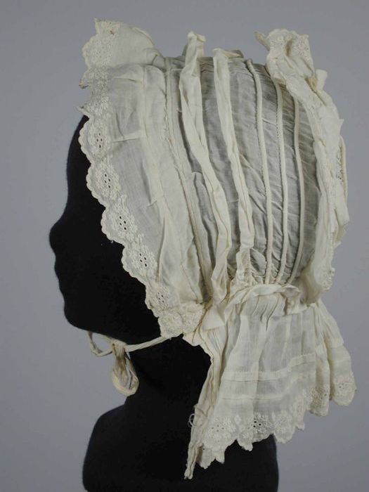 Boudoirmuts of ondermuts van wit katoen, rondom een ...