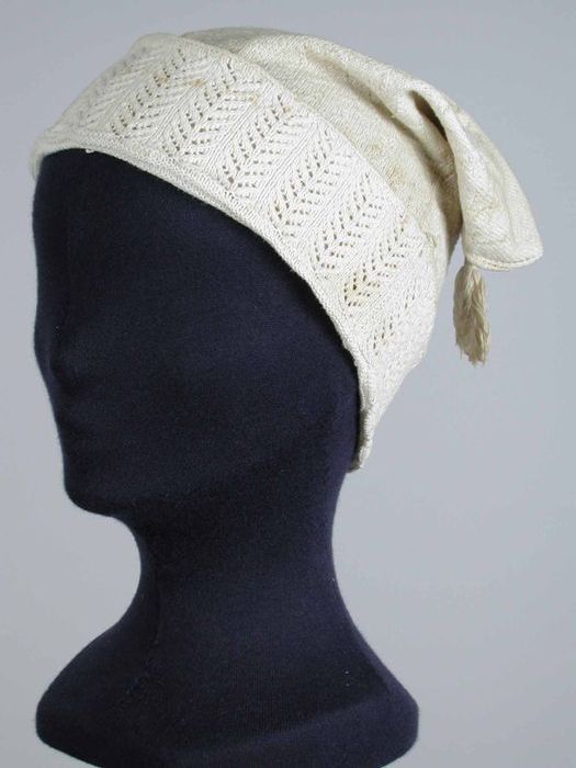 Slaapmuts gebreid van fijn wit katoen, ajour stervor...