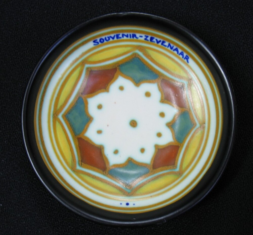 Wandbordje van aardewerk met de tekst Souvenir Zeven...