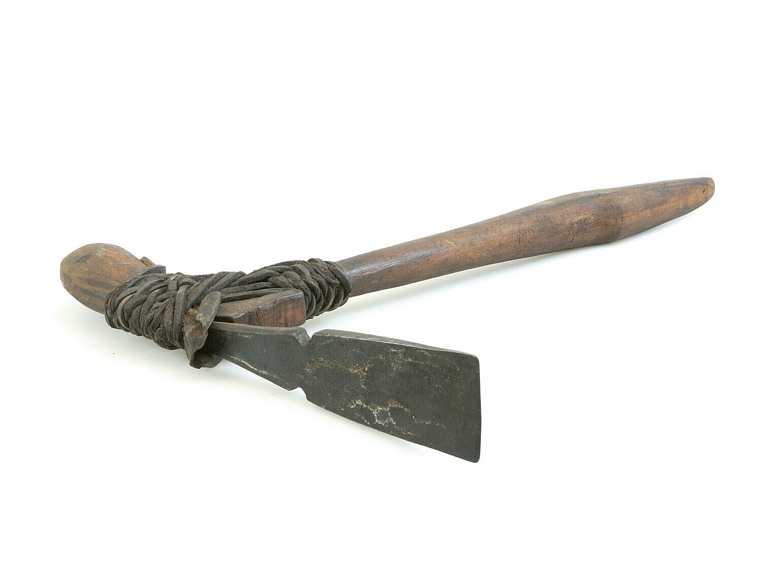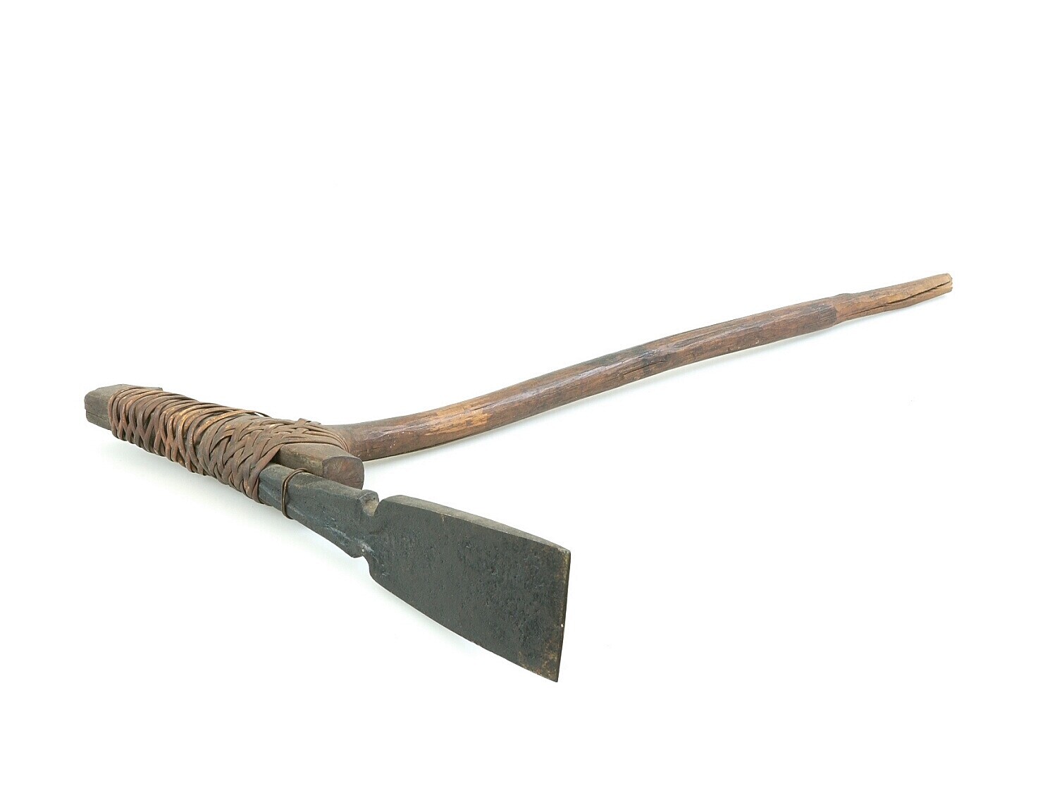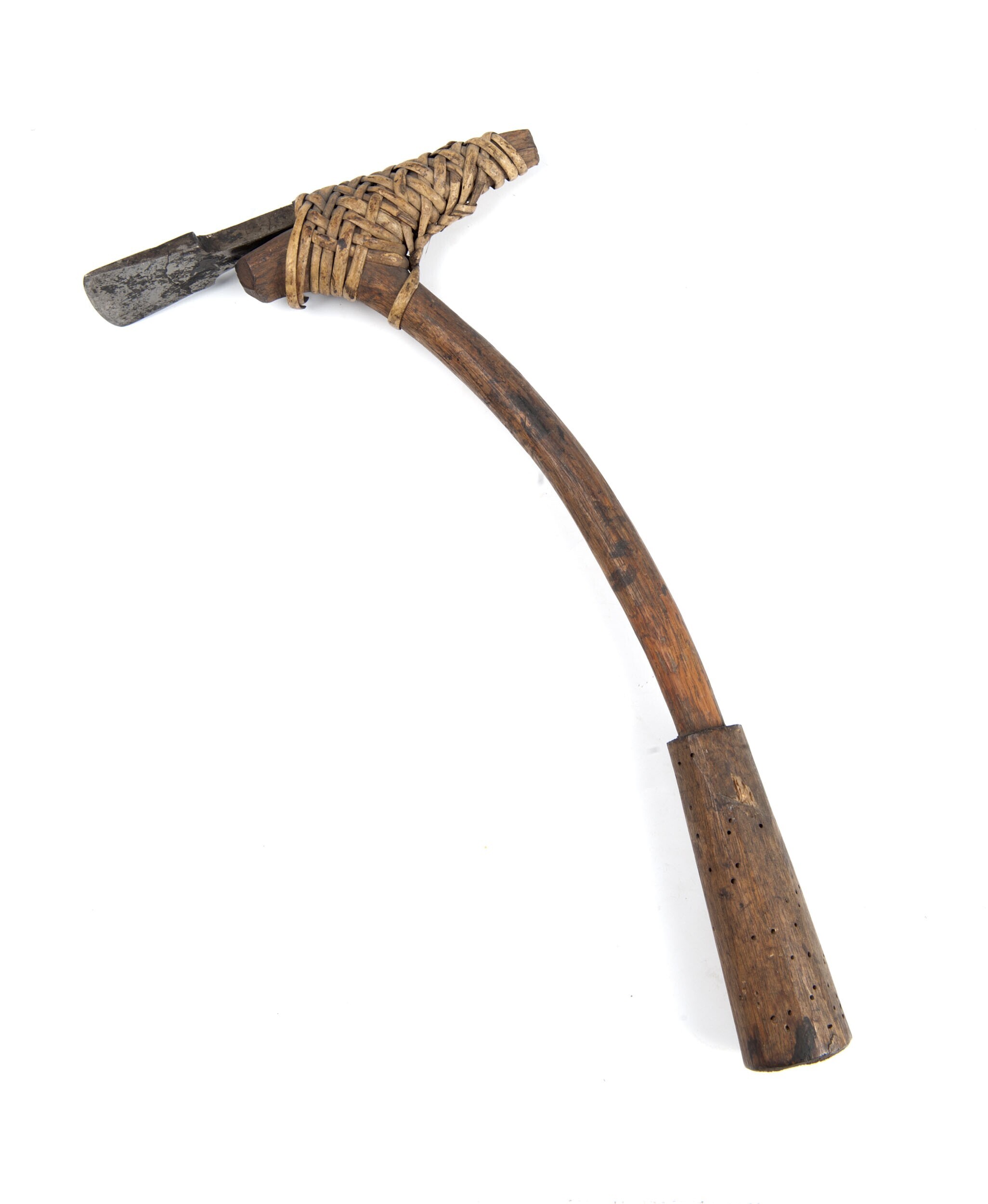Dissel met ijzeren kling, met rotan aan steel bevestigd