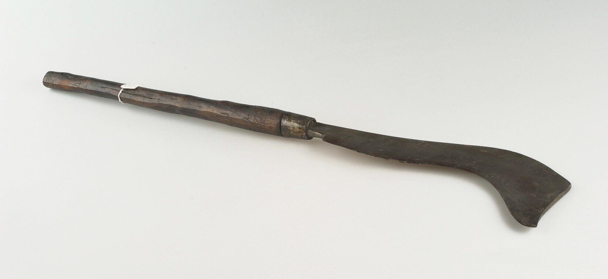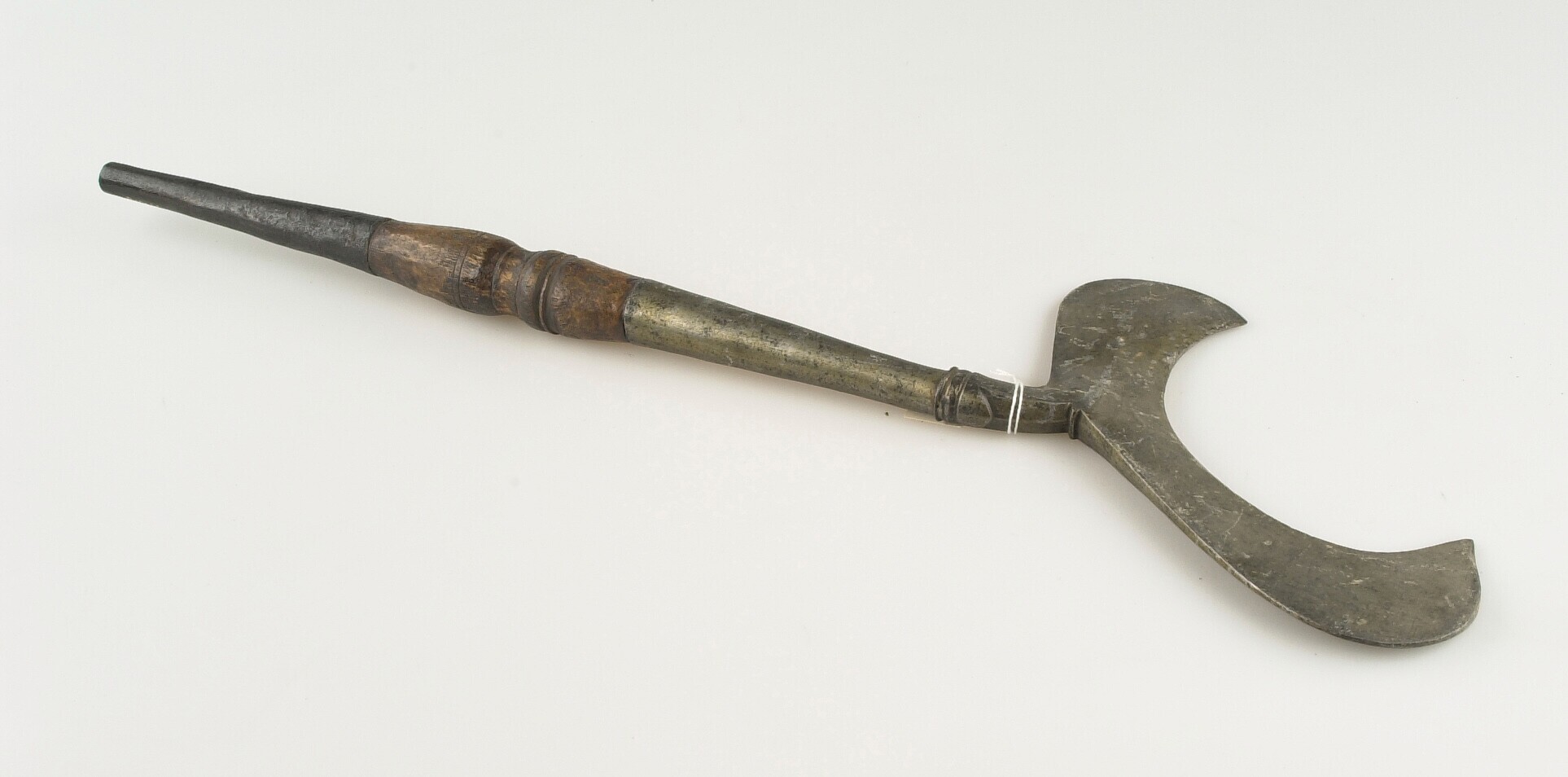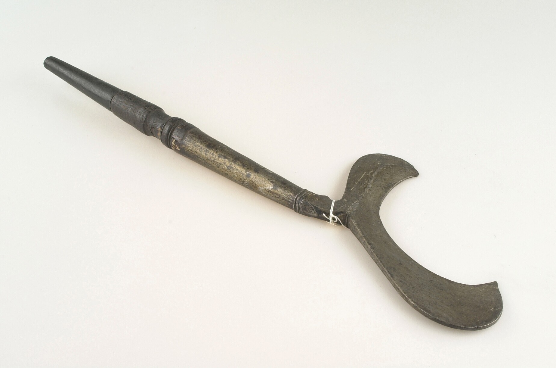 Dissel met ijzeren kling, met rotan aan steel bevestigd