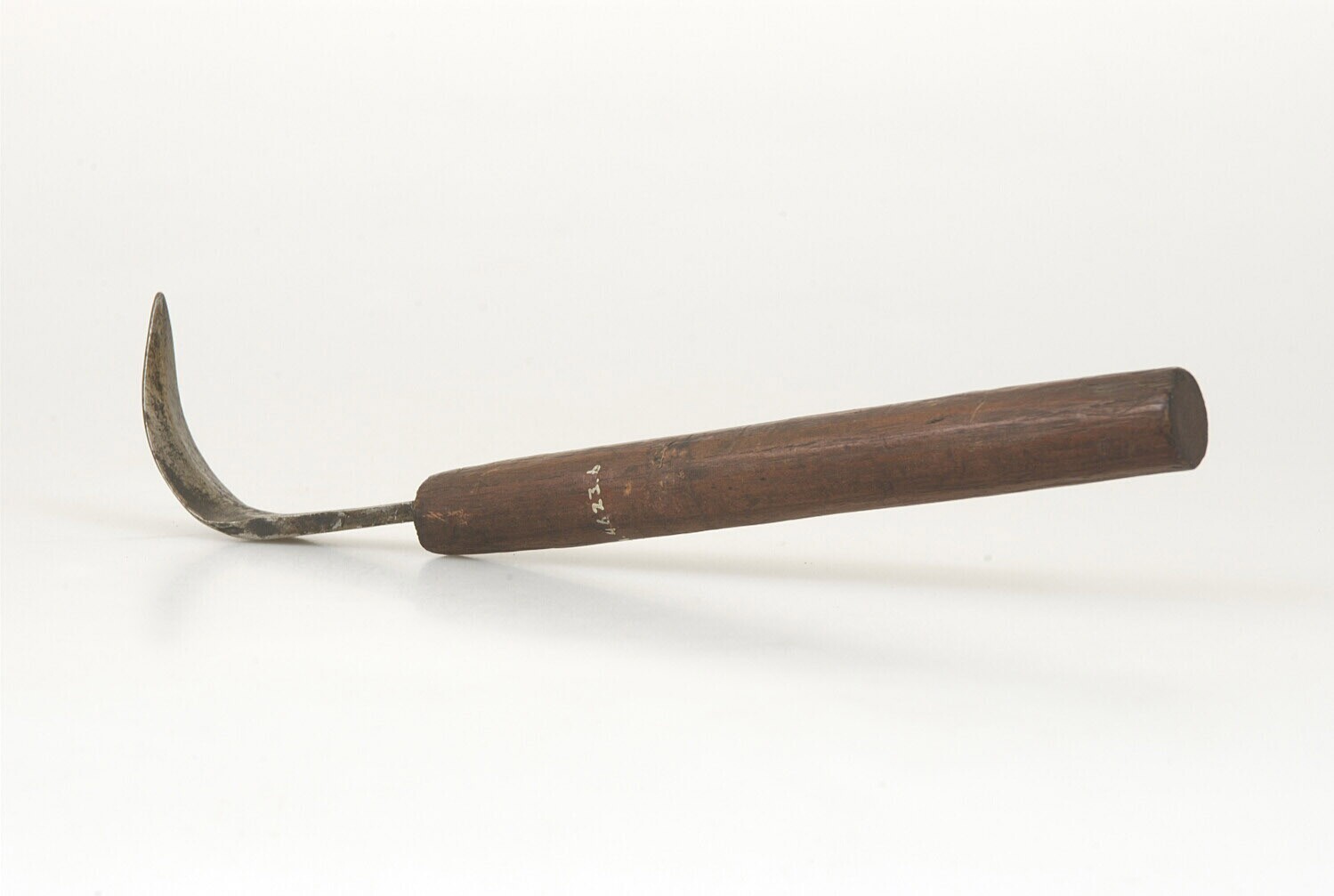 Kapmes, voorzien van houten handgreep met ingekraste...