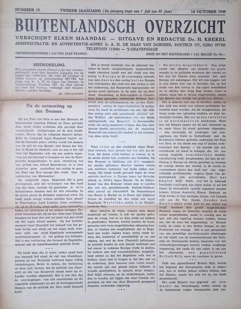 Buitenlandsch overzicht, 14 oktober 1940