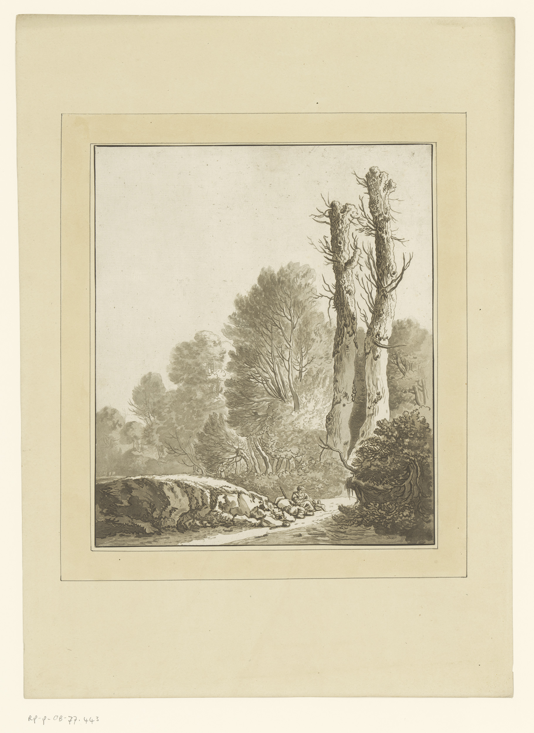 Bosweg met rustende reizigers