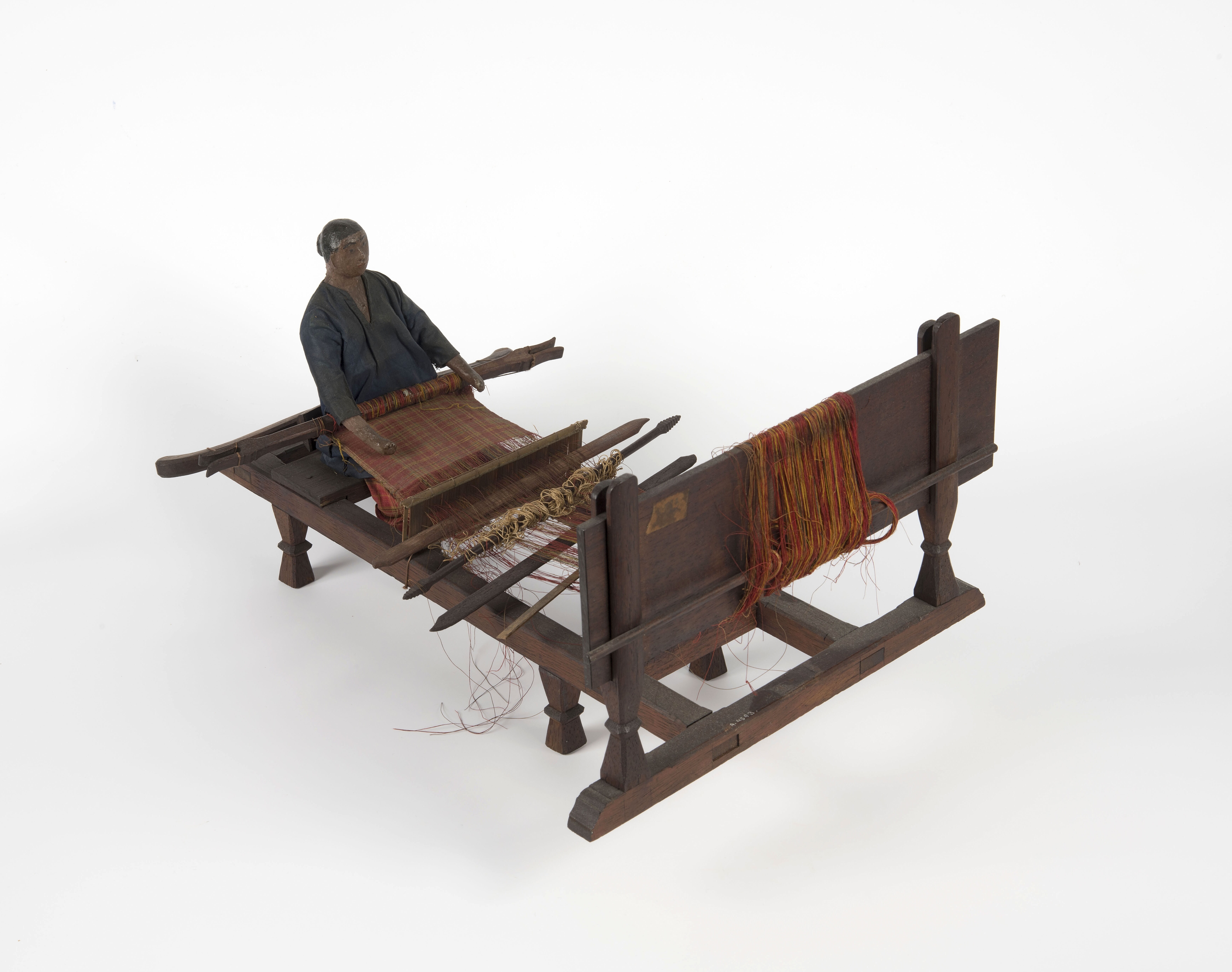 Model van een weefster met weefgetouw