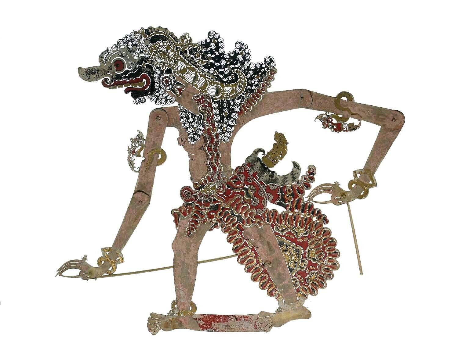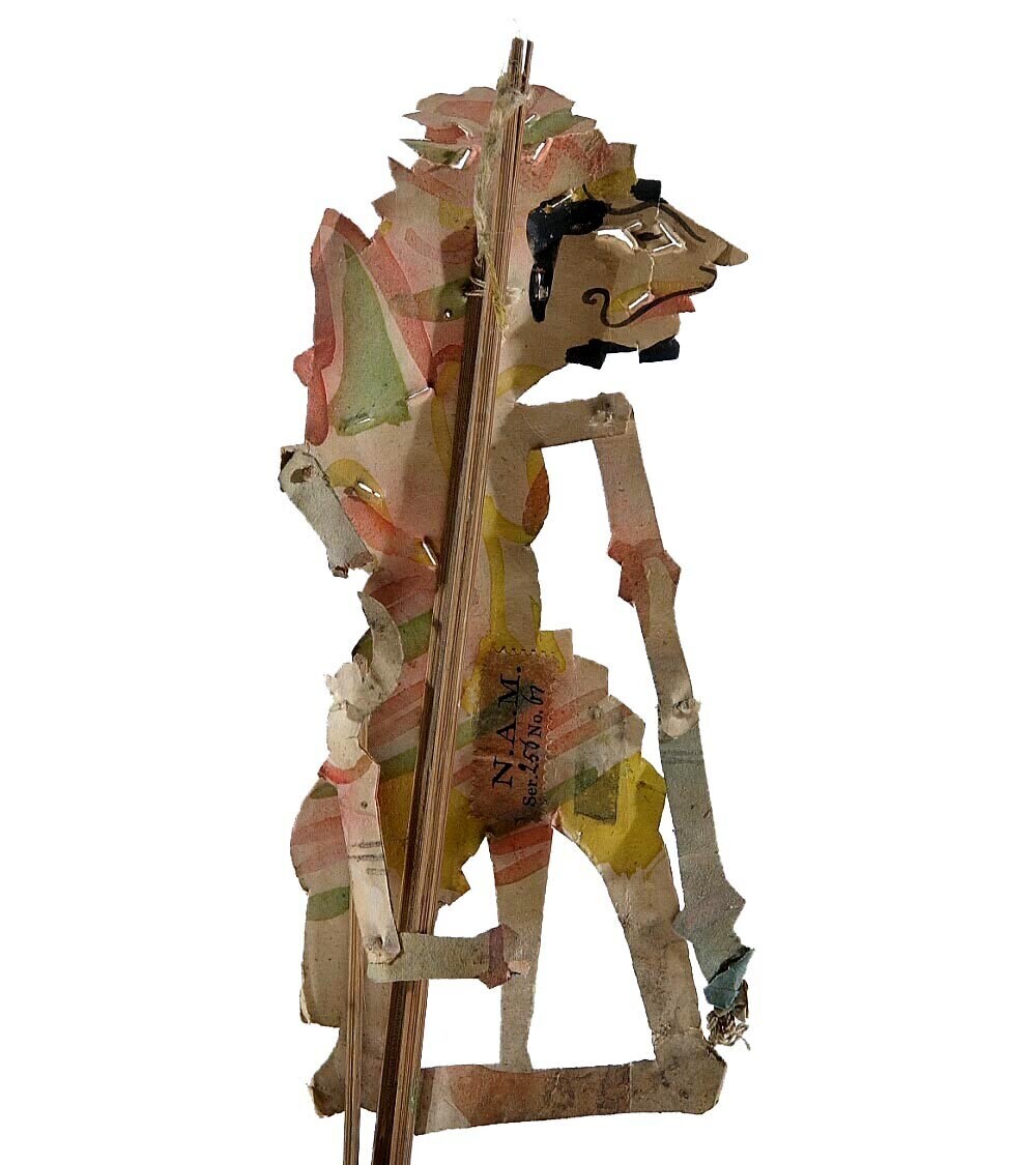 Gekleurde papieren wajangpop, een aap, behorende bij...