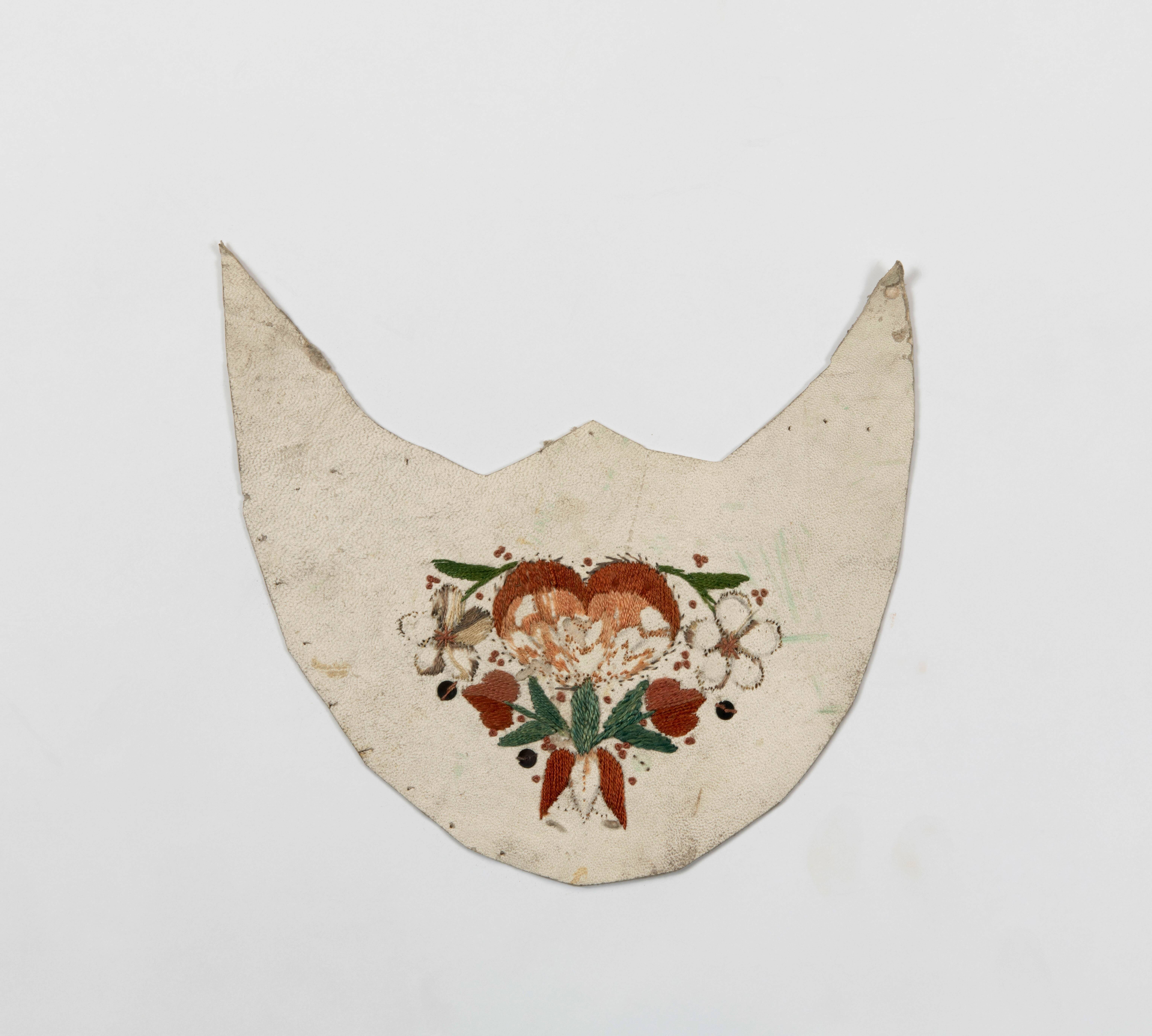 Geborduurd leren voorstuk van een muiltje