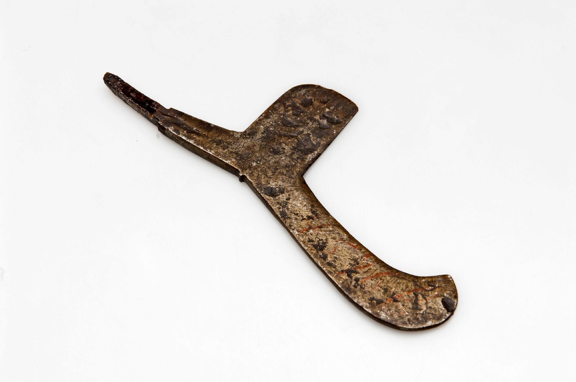 IJzeren schraper met houten greep, versierd met gevl...