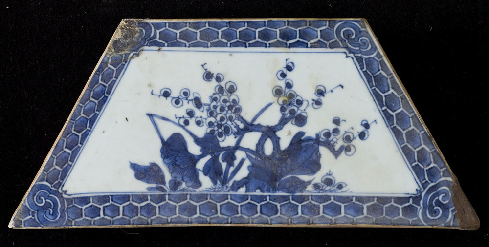 Tegel van porselein met decor in onderglazuur, voors...