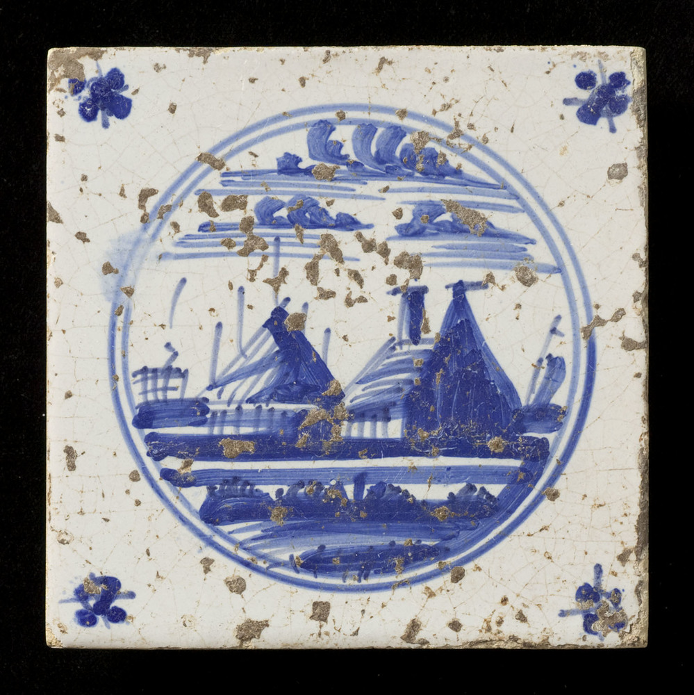 Tegel van keramiek, tinglazuur, voorstellende een ce...