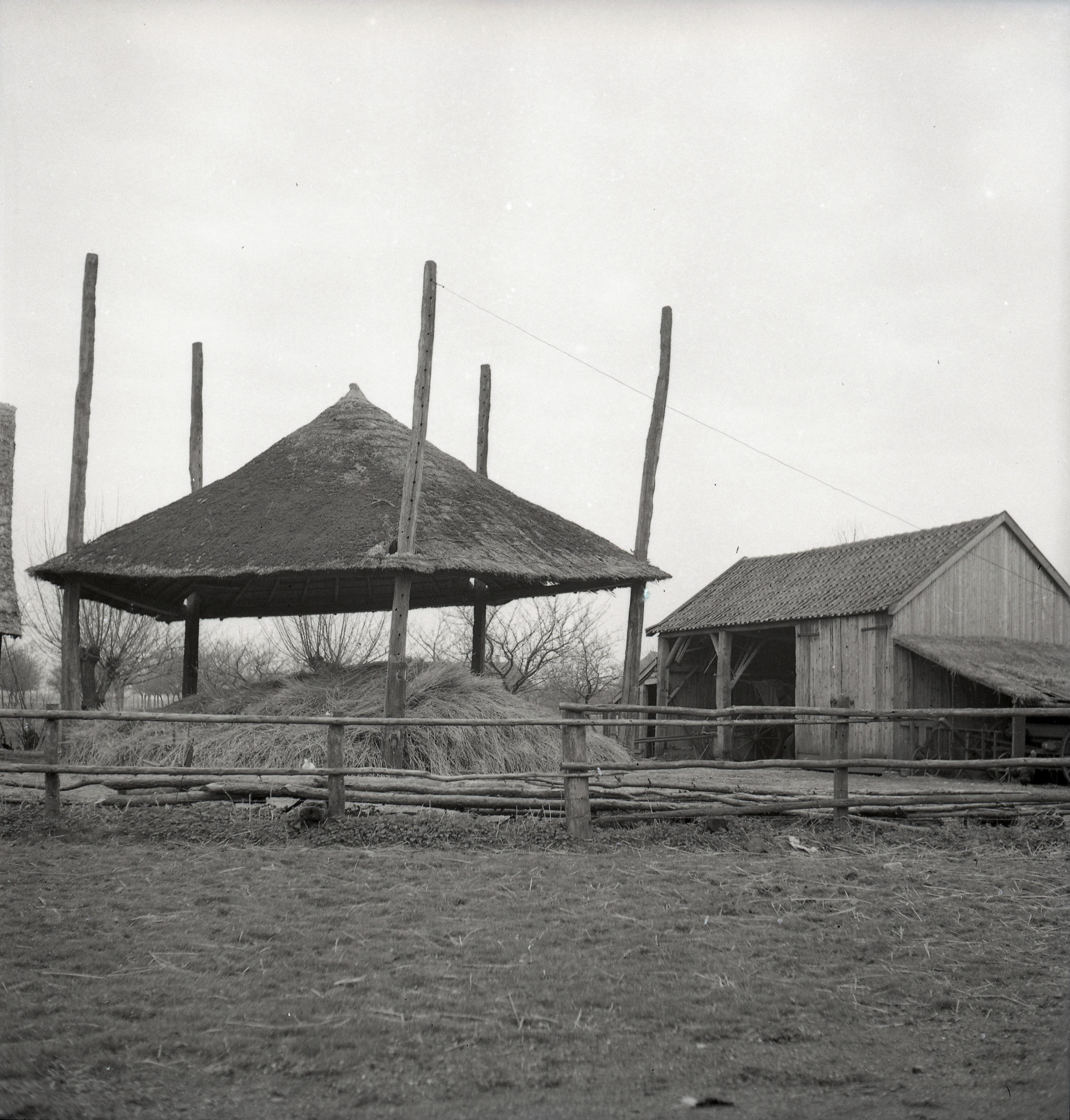 Maisdroogschuurtjes, Varsselder, 1943 (zwart-wit neg...