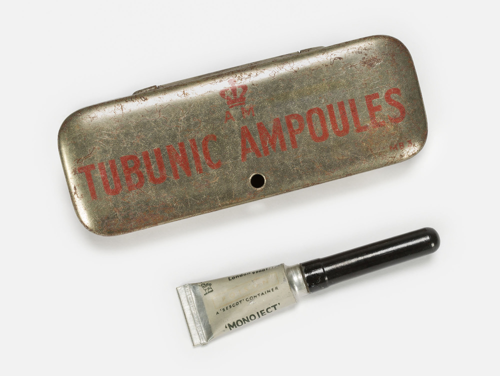 Metalen blikje voor morfineampullen gebruikt in EHBO...