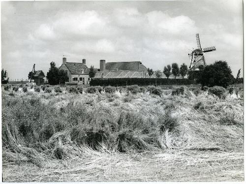 Foto in zwart-wit bouwen een mijt vlas op door J.D. ...