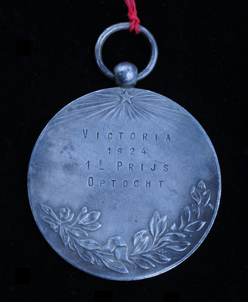 Gedenkpenning van metaal met voorstelling van twee w...
