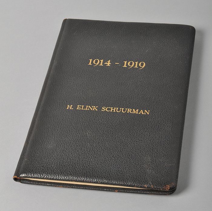 Aanbiedingsboek, met zwarte kaft en opschrift "1914-...