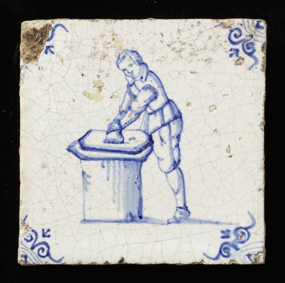 Tegel van keramiek, tinglazuur, voorstellende een be...