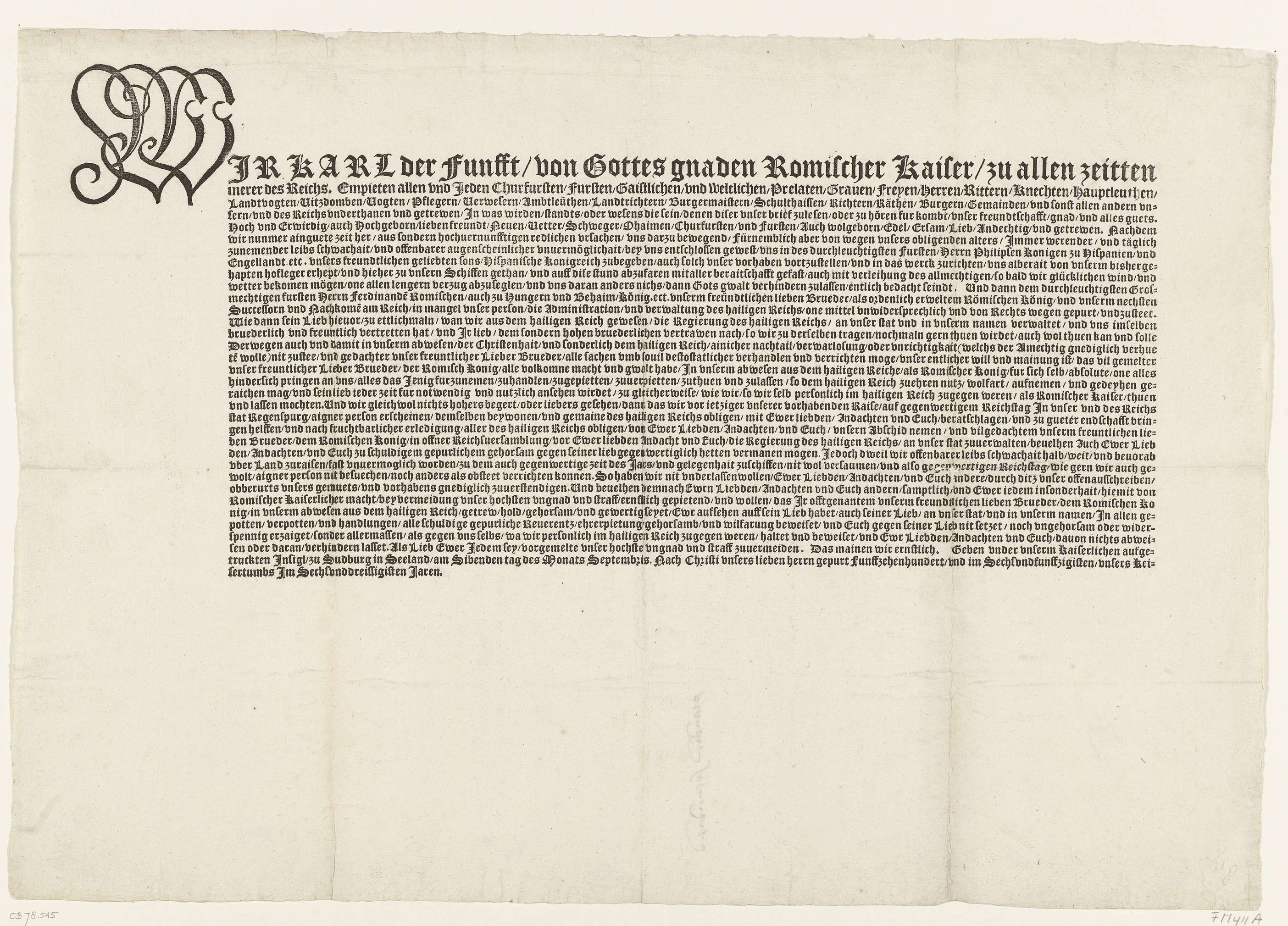 Duitse afscheidsbrief van keizer Karel V aan alle vo...
