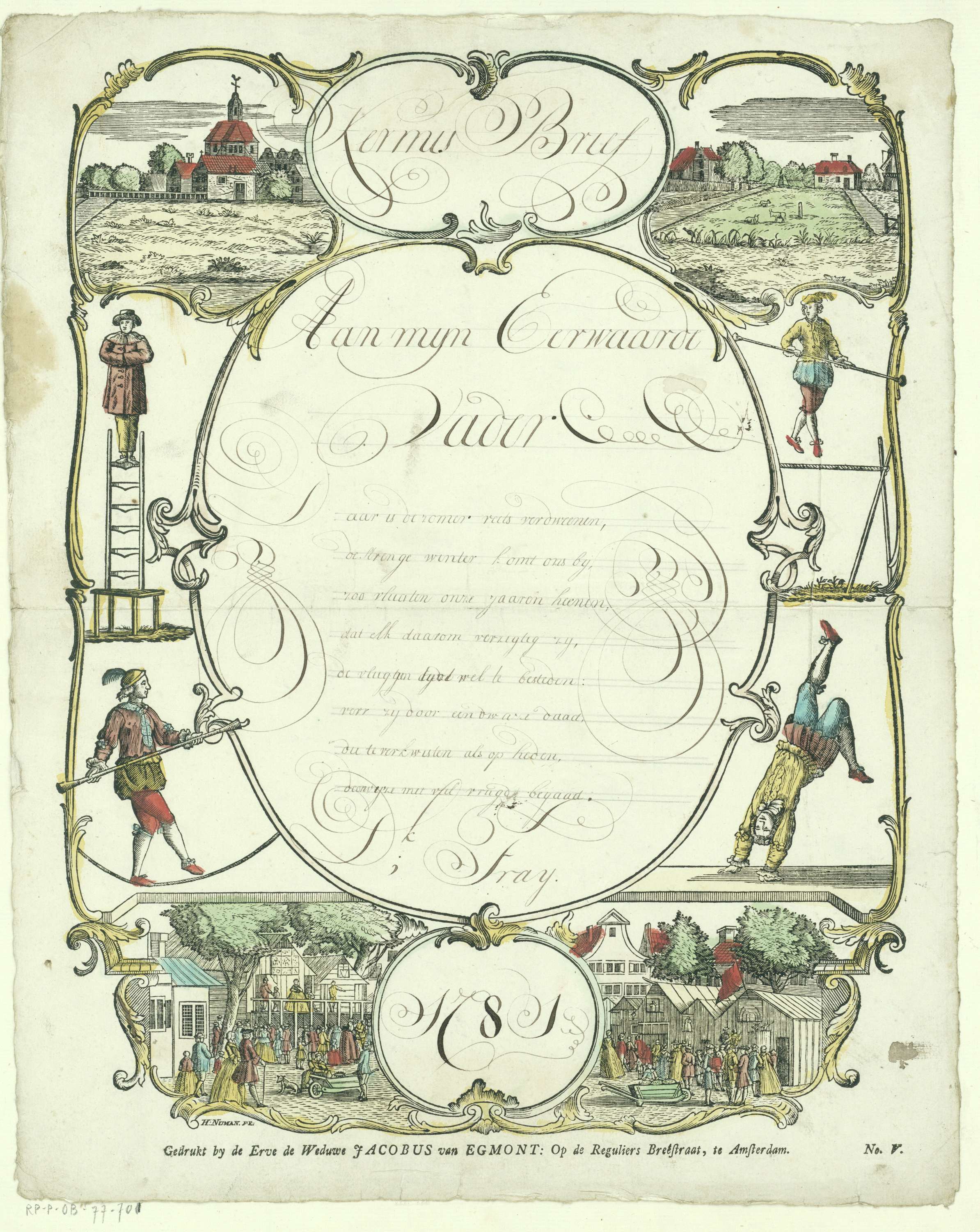 Wensbrief met kermisattracties en acrobaten
