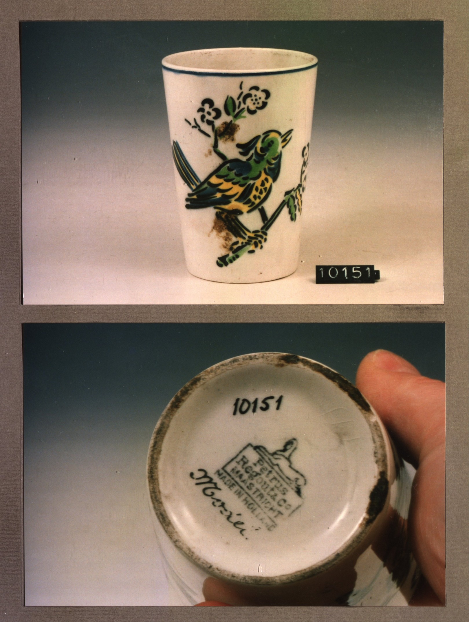 Beker, model Gewoon met decor Vogel