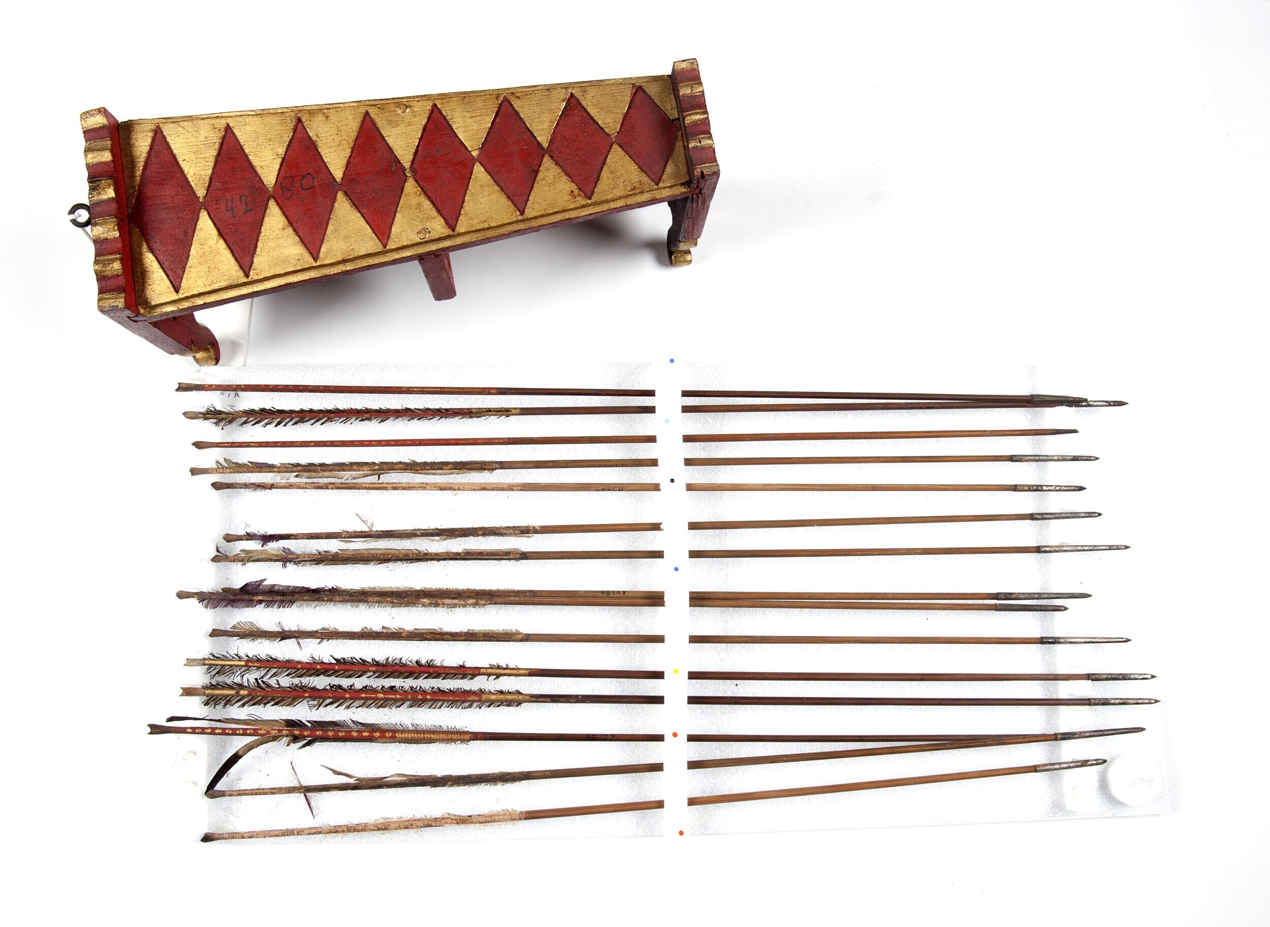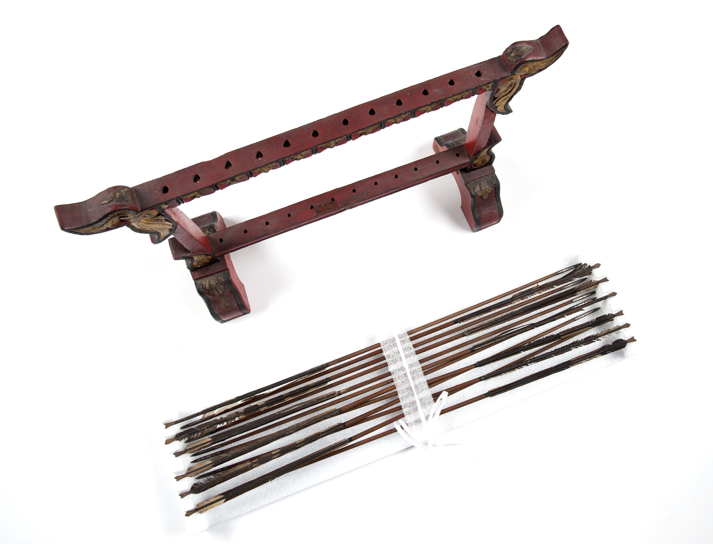 Houten standaard met vijftien pijlen