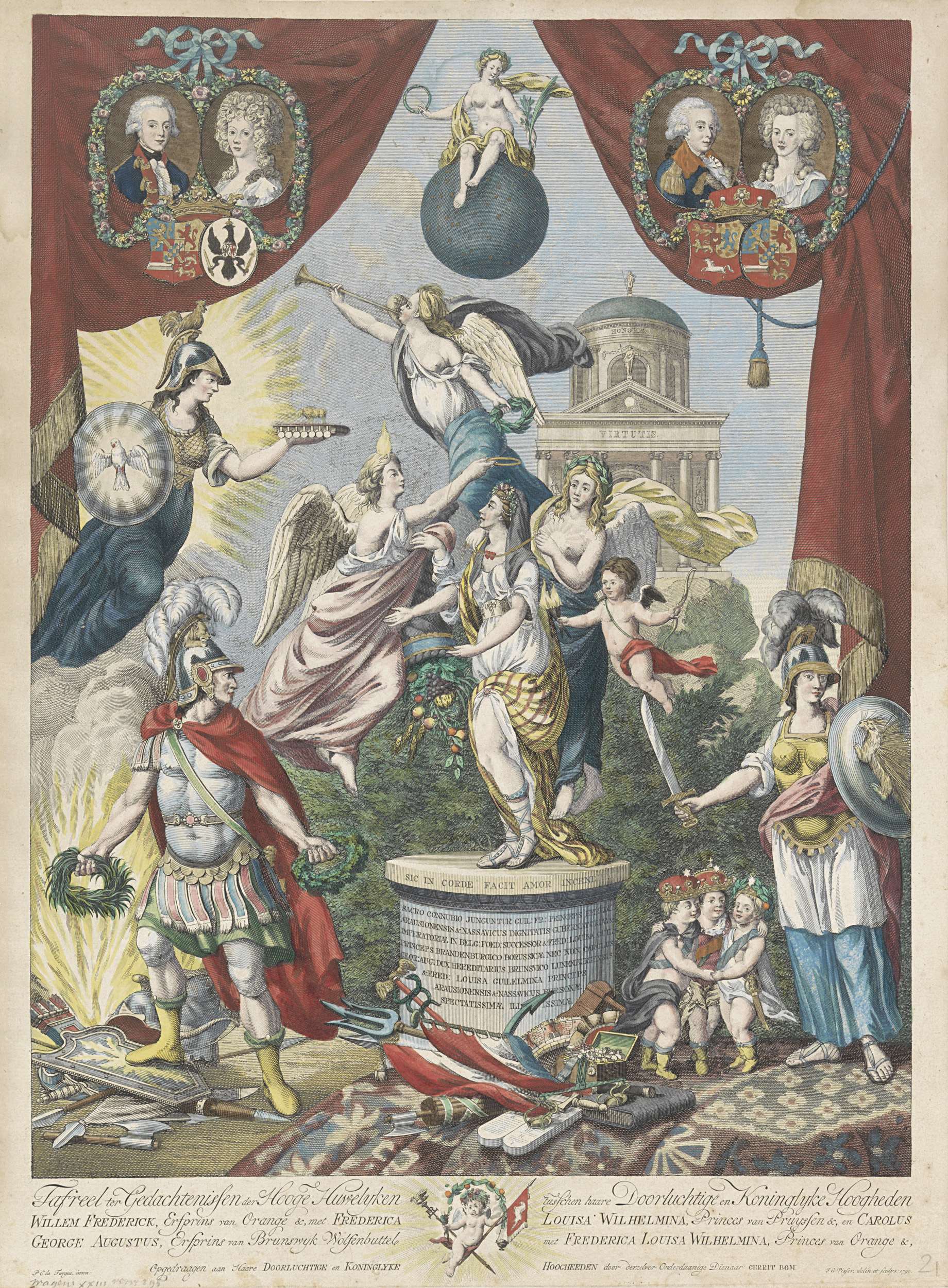 Zinneprent rond huwelijken van de zoon en dochter va...
