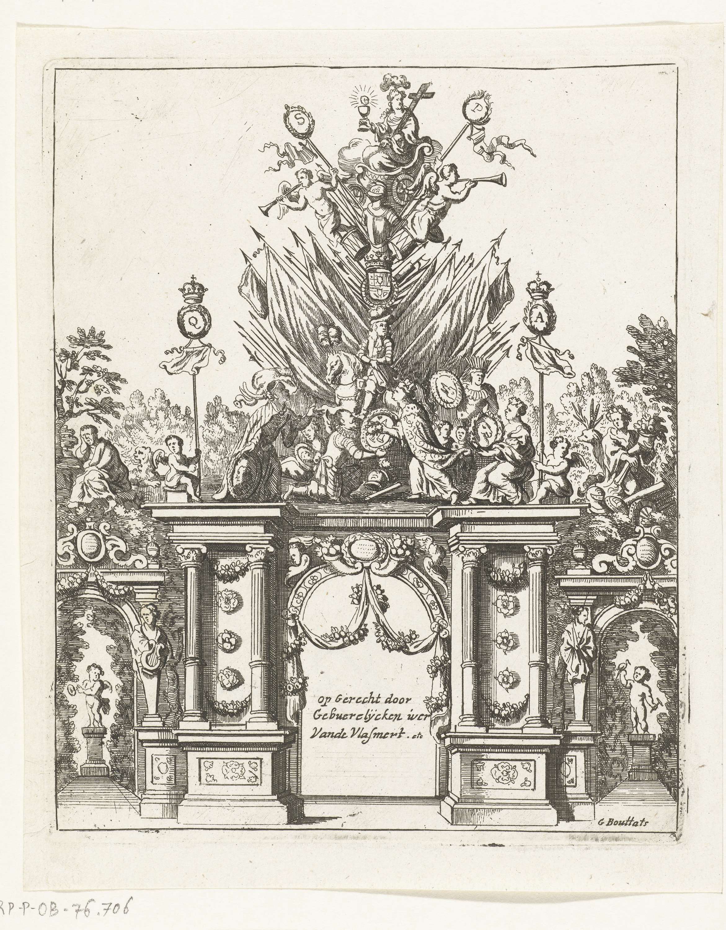 Triomfpoort opgericht op de Vlasmarkt, 1685