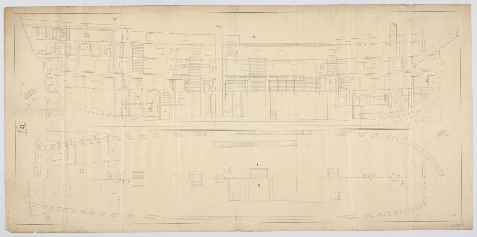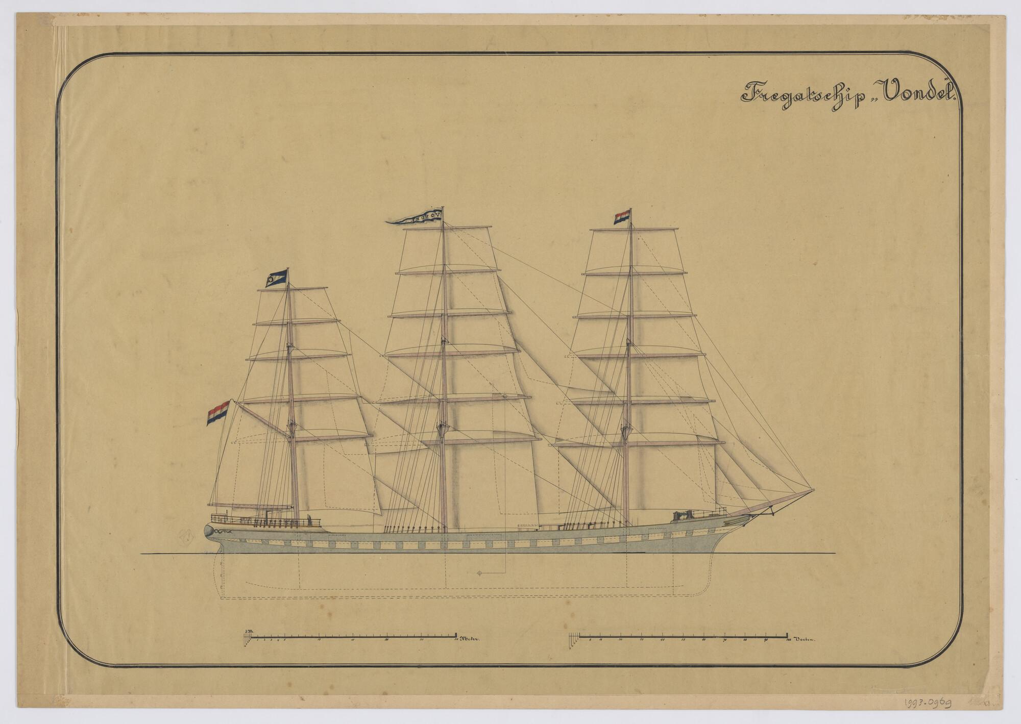 Afbeelding in kader met anker van fregat Hr.Ms. De R...