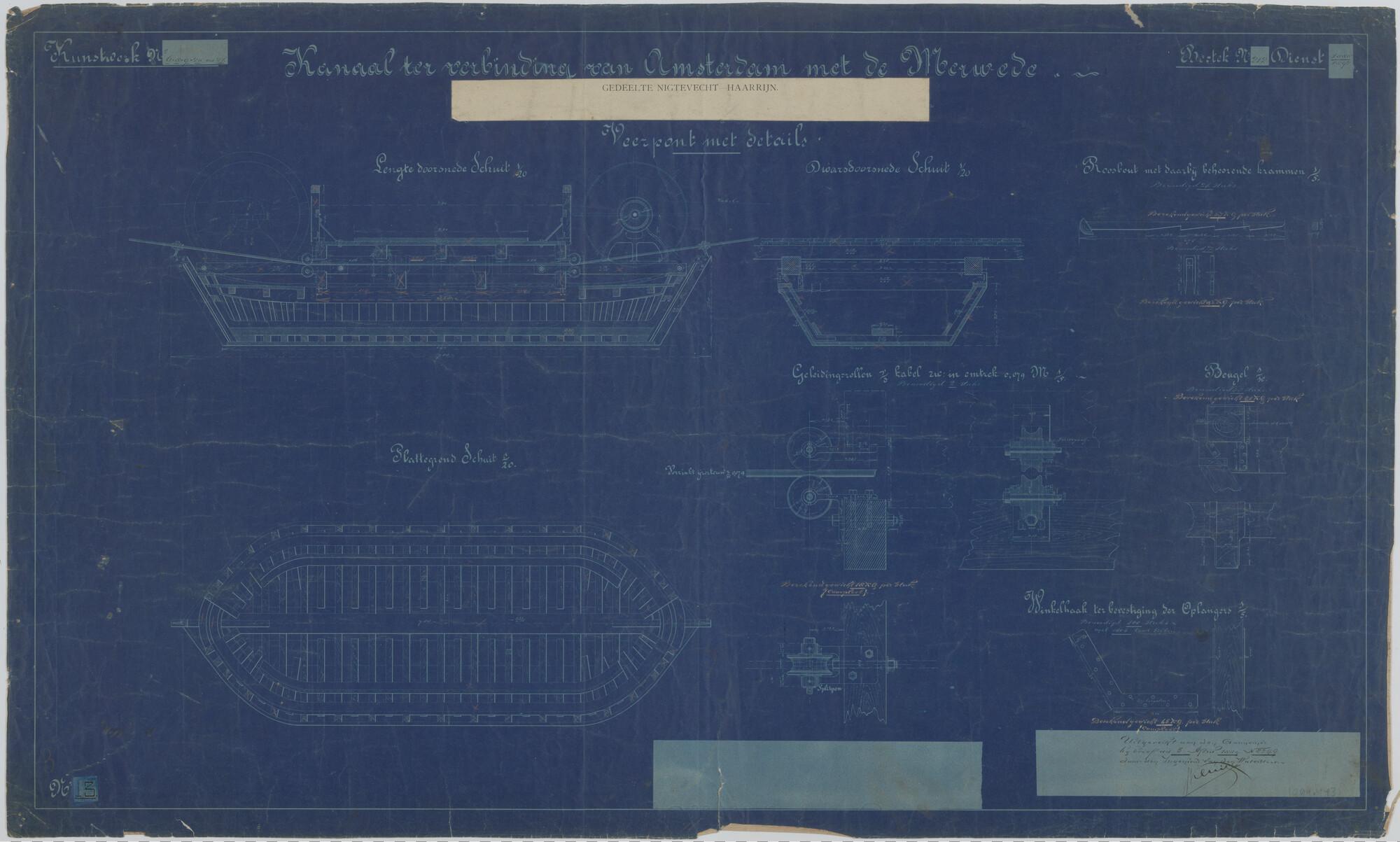 Algemeen plan van een veerpont voor het kanaal ter v...