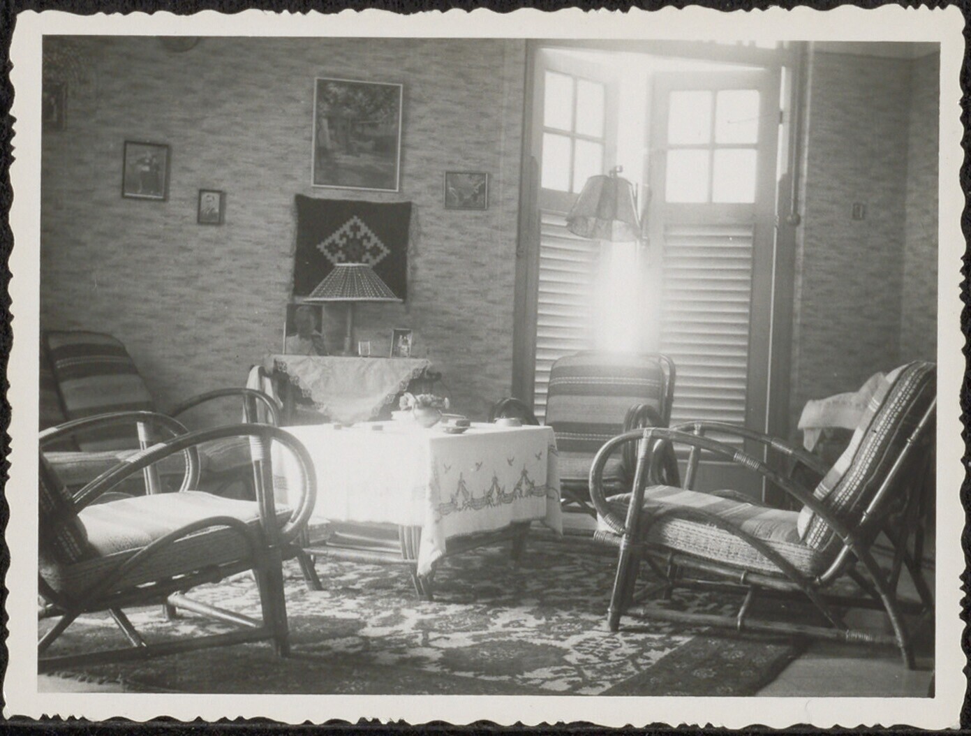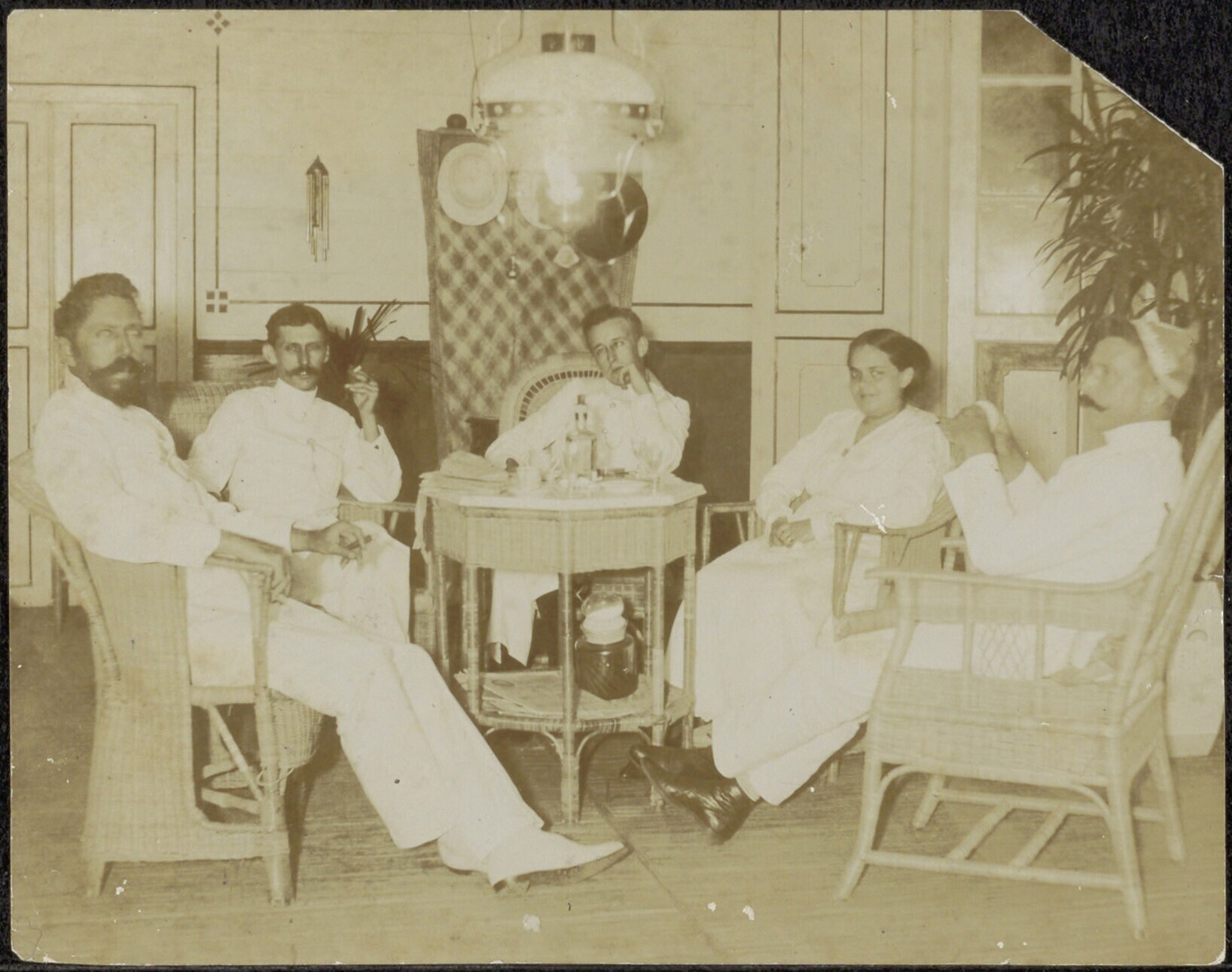 Interieur met comfortabele stoelen te Batavia